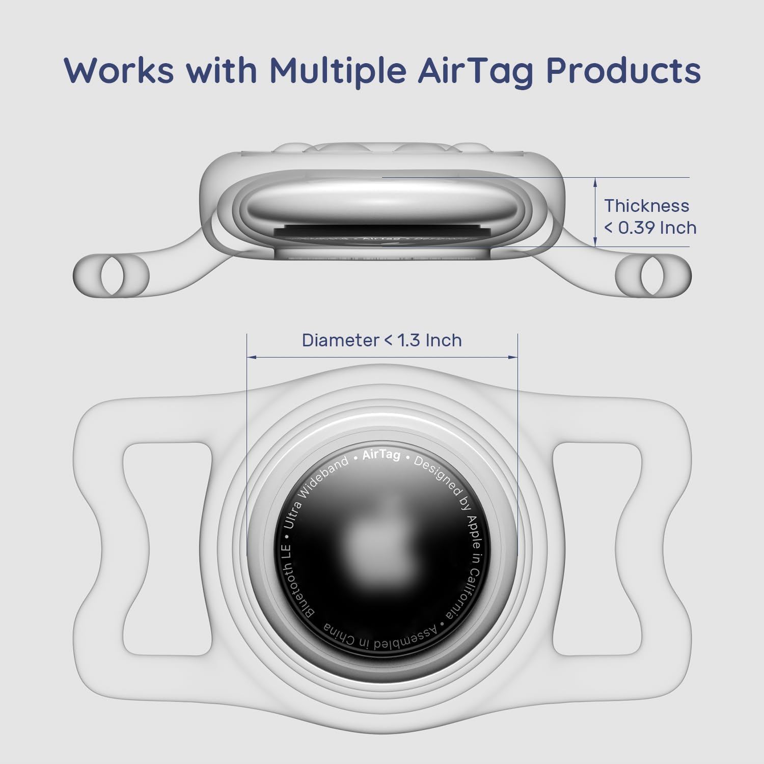 About this item Excellent Design : Soft and flexible AirTag Holder gives your apple AirTag full protection. Premium silicone 360° full cover AirTag with AirTag case inside and external binaural silicone sleeve combination for dust, water, and drop proof protection Specially Designed for All Pet Collars : Stretchable straps made of flexible silicone adapt to different widths of pet collars.AirTag Holder Adjustable Width: 1 ~1.5 inch, you can attach the AirTag easily to dogs collars, cats collars, and luggage for worry-free tracking Secure Pet Airtag Holder : Specially designed for apple AirTag 2021, Silicone airtag holder will tightly wrap around Air Tag and won't fall out easily. It will fit perfectly on pet collar without shaking, giving your pet more comfort while exercising and reducing their chances of chewing Easy to Install : Installs air tag Holder in just less than a minute, first placing it in the inner AirTag case , then plugging it into the outer AirTag Holder IP68 Waterpoof : Premium waterproof capabilities keep it safe for your pet to play in the water without suffering water damage › See more product details