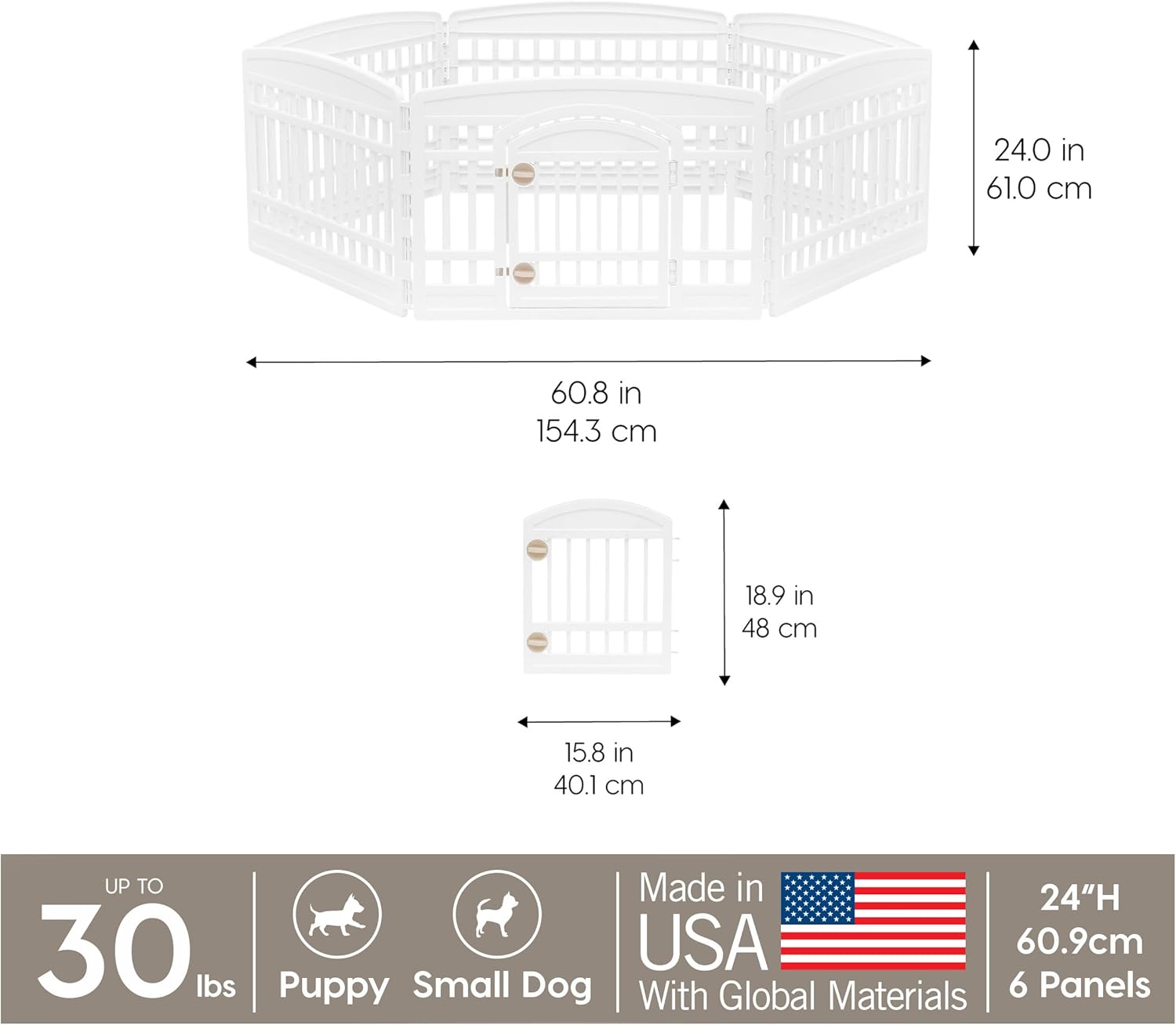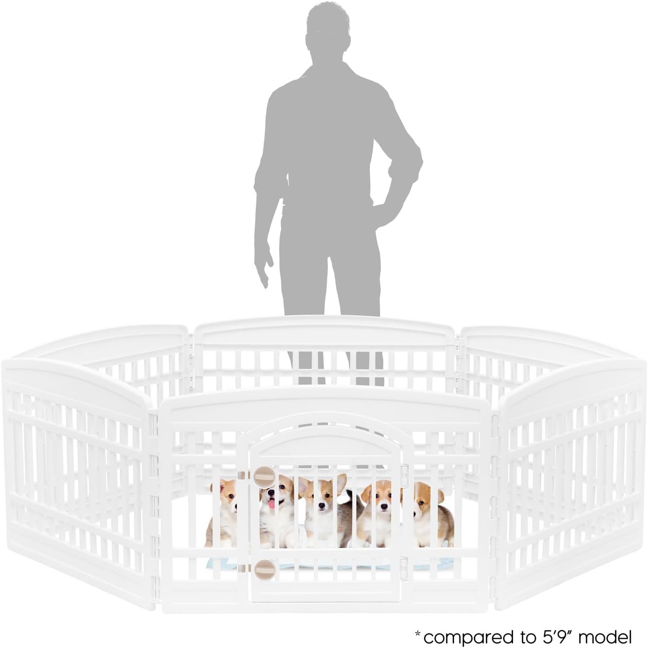 Give your small to medium dog a secure, spacious place to play and unwind with the IRIS USA exercise playpen. Designed for breeds like Beagles, French Bulldogs, Shiba Inus, Border Collies, and similar sizes, this tall 35" pen offers extra security for pets that are more active or prone to jumping. With durable, heavy-duty panels and a roomy 63" x 63" interior, it’s perfect for indoor or outdoor use as a dog fence, play yard, or exercise area. The built-in front-panel door makes access easy, while non-skid rubber feet help protect floors and keep the pen firmly in place. A strong, smart solution for giving your pet freedom without sacrificing safety.
