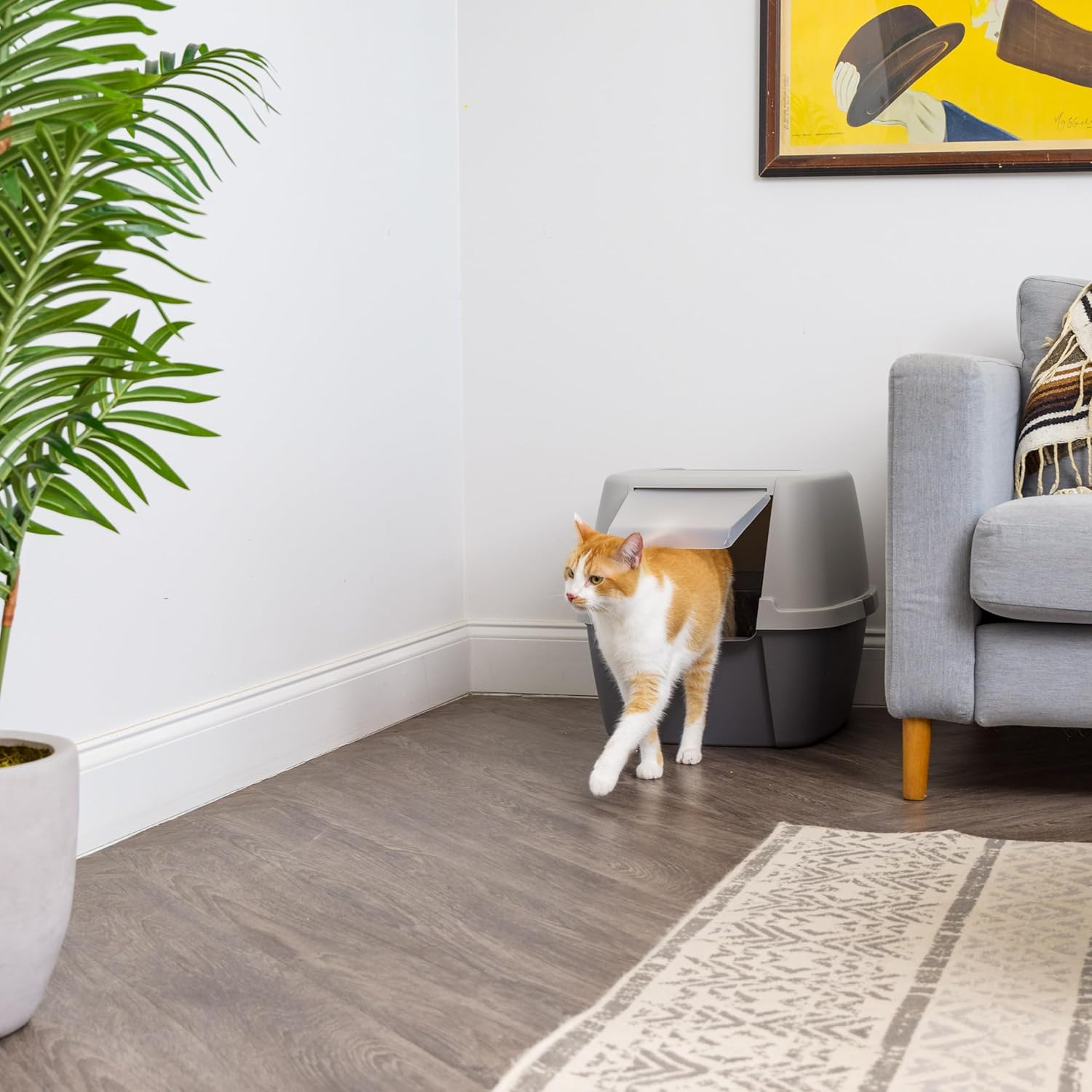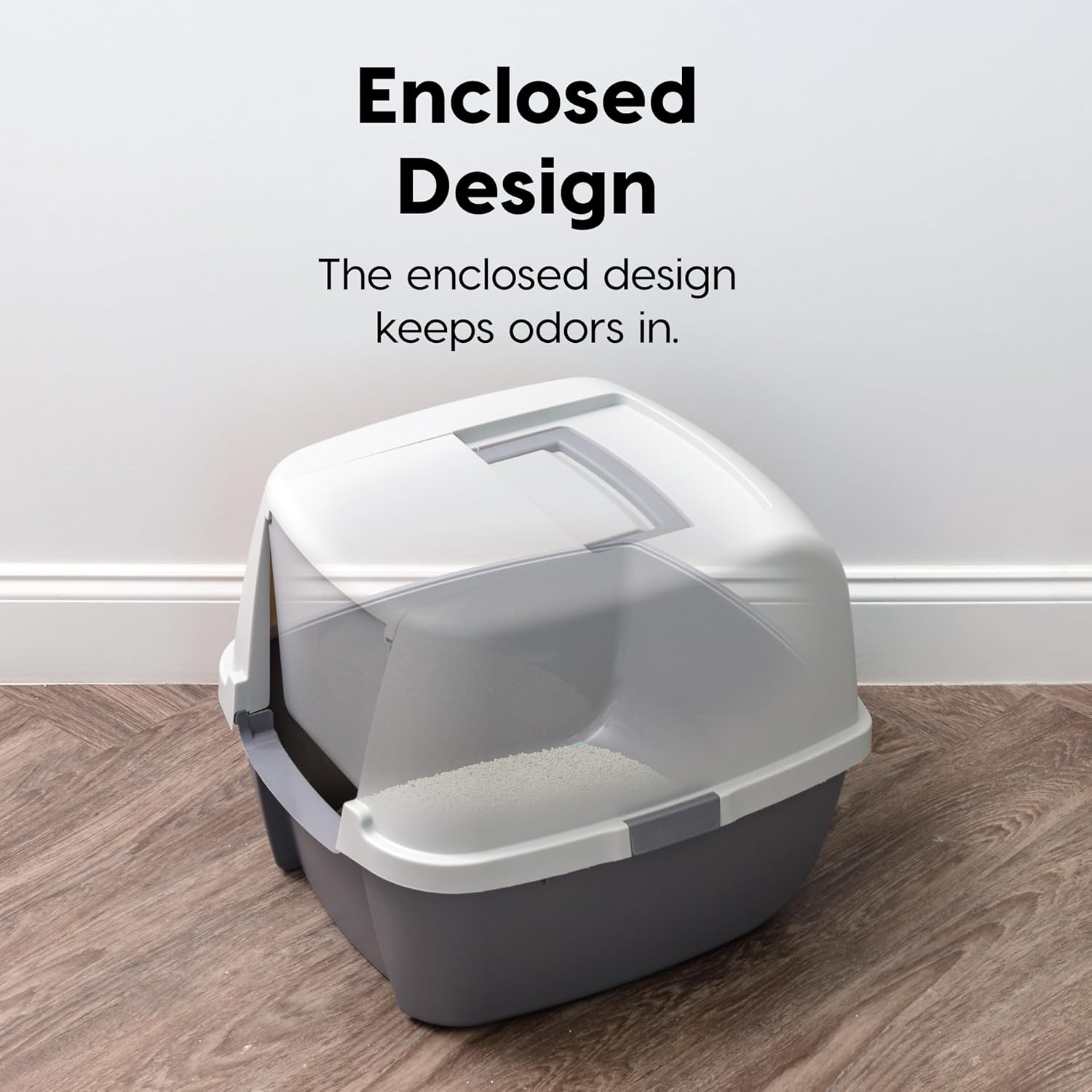 No dogs allowed. Give your cat the privacy they need and keep the dog’s nose out of the litter box with the front entry litter box by IRIS USA, Inc. Your cat will love the easy front entry that provides them with room to move around and you'll love how well it prevents messes and odors from spreading. The hood creates an enclosed space that keeps litter and spraying contained in the litter box and makes cleanup a breeze on your end and the included scoop features a hook that can clip onto the inside of the kitty litter pan, keeping it well within reach for whenever you need it. Let's make life a little easier for all.