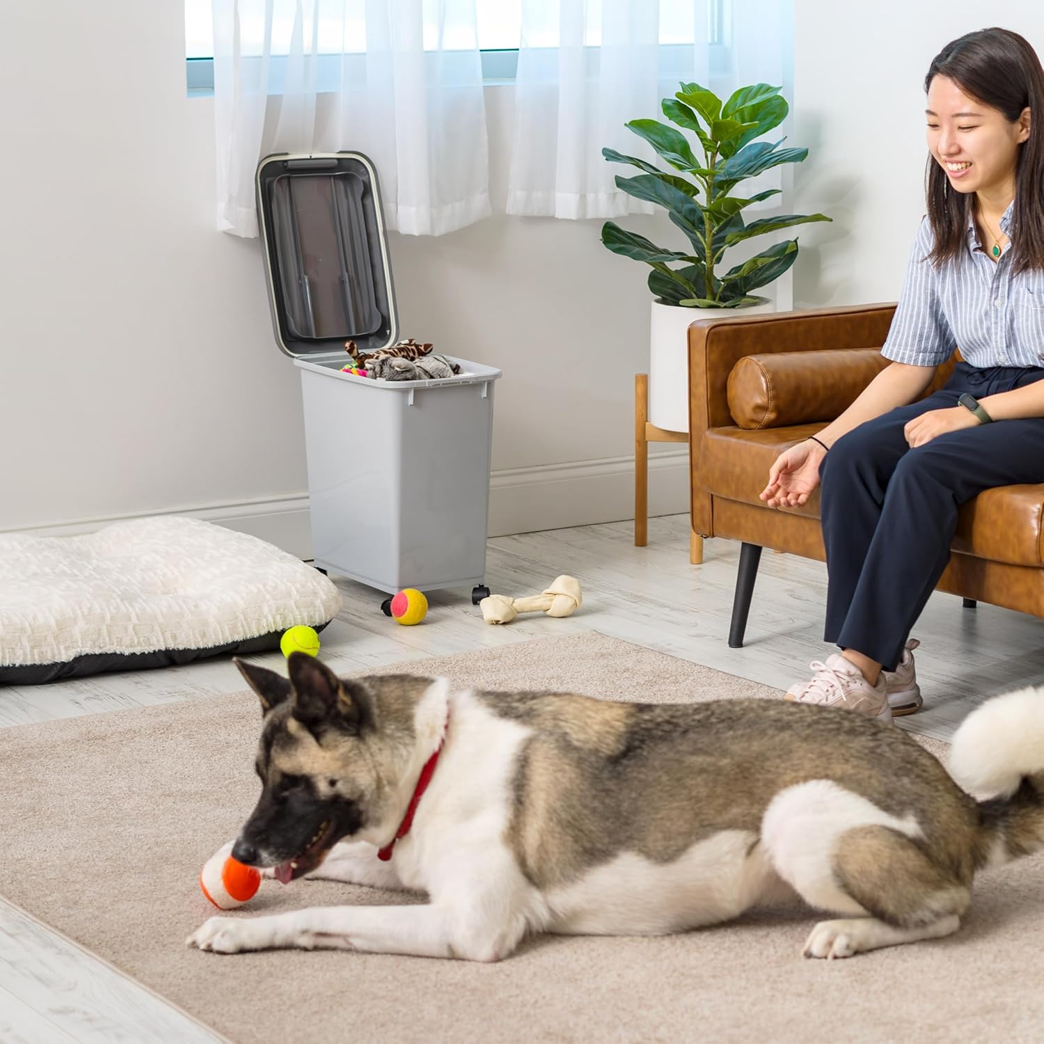 Keep your pet's food fresh, organized, and easily accessible with the IRIS USA Airtight Dog Food Storage Container. Designed to store up to 30 lbs of dry food, this versatile container is perfect for cats, dogs, birds, and other pets. The airtight seals and snap-lock latches ensure that moisture and humidity stay out, preserving the freshness of your pet's food. The pet food storage container is BPA Free and features attachable wheels, allowing you to roll it effortlessly from the storage area to your pet's feeding station or keep it stationary on a shelf. The built-in scoop storage in the lid includes a 2-cup scoop, so you always have the perfect tool for measuring and serving your pet's food. Upgrade your pet food storage solution with the IRIS USA Airtight Dog Food Storage Container and enjoy the convenience and peace of mind that comes with knowing your pet's food is always fresh and ready to serve.