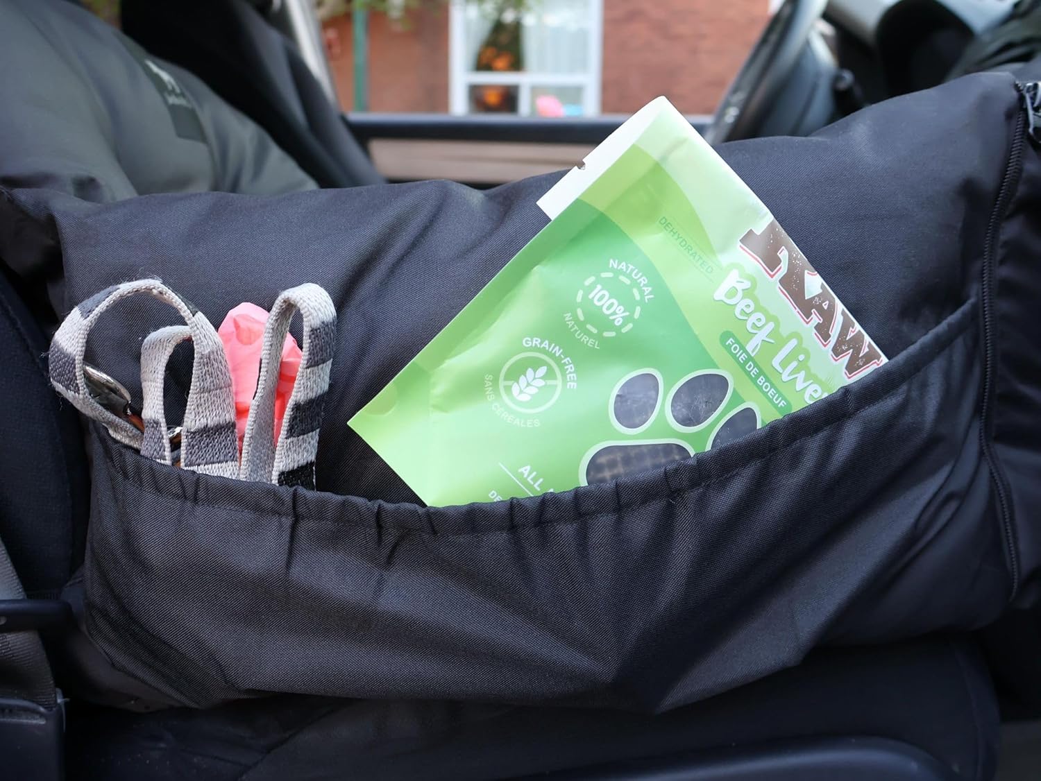 About this item Designed for Comfort. Built for Travel. Trusted for Safety - Perfect for dogs, cats, puppies, kittens & pets up to 25LBS. Dimensions: 22"L x 18"W x 14"H Perfect for Road Trips, Travel & Everyday Adventures - Keep your pet safe, secure, and cozy whether you're heading out for a weekend getaway or just running errands. Featuring a soft cloudlike cushioned design, our dog car seat offers superior comfort compared to traditional rigid bucket seats. Not meant to be used like a ridig structured bucket seat, our car seat is extremely soft and comfrtable Premium Water Resistant Oxford Fabric Durable & Machine Washable (FRONT LOAD ONLY) Multi-functional safety design for Cars / SUVs / Trucks (Medium Recommended for BACK SEAT ONLY) Two safety buckles to secure car seat to vehicle & built in clip on leash (lead) to secure pet to car seat Easy access side storage pockets & nonslip bottom. Front zipper design for easy access and extended comfort Side handle feature to convert into carrier for shopping and travel Designed in Canada Show more › See more product details