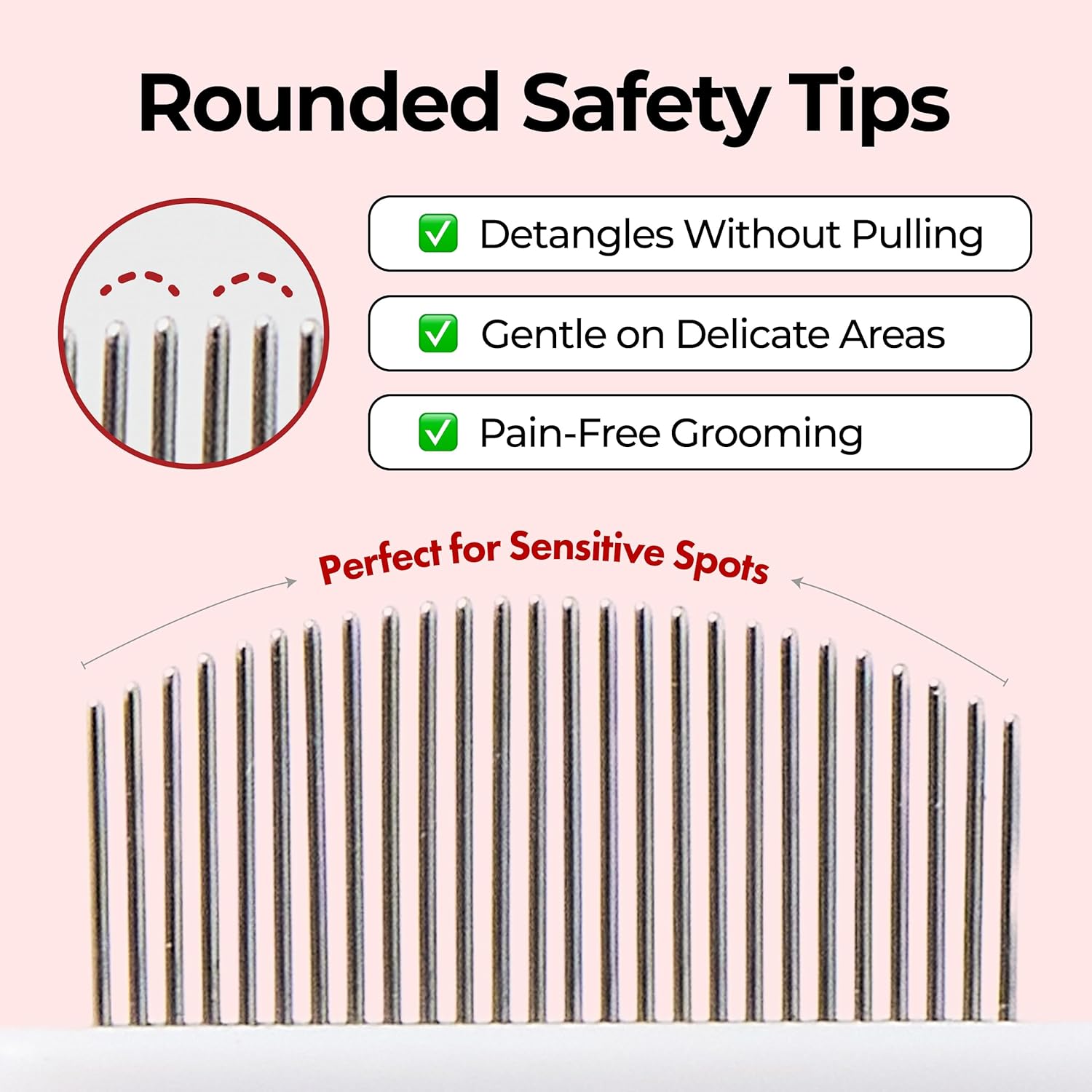 About this item Ultra-Fine Stainless Steel Teeth for Precise Cleaning - Removes tear stains, eye crust, and fine debris around your pet’s eyes and nose. The high-precision comb reaches tight areas without scratching, ideal for delicate facial zones. Rounded Safety Tips for Sensitive Skin - Each prong is carefully rounded to prevent scratching or tugging. Perfect for pets prone to irritation, the comb offers a safe and gentle grooming experience. Lightweight & Ergonomic Grip - Comfortable to hold with a non-slip body, making daily grooming easier for pet parents. Designed to reduce hand fatigue and give you full control. All Breed Compatibility - Effective on short or long fur, and safe for small pets like Maltese or large breeds alike. Great for toy breeds, flat-faced pets, and even as a flea comb. Durable & Easy to Maintain - Made from rust-resistant stainless steel, it’s built to last. Rinse under warm water after use for a quick clean – hygienic and travel-friendly. › See more product details