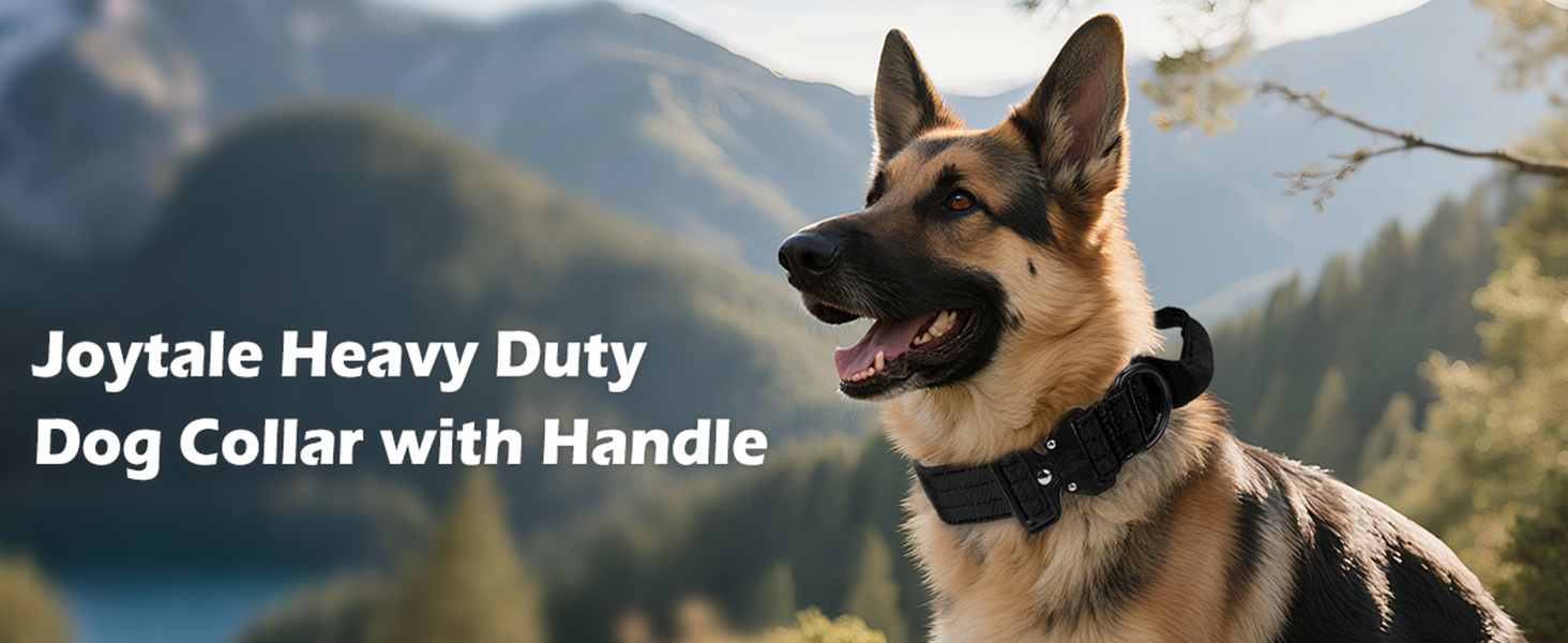 About this item Heavy Duty Material: This tactical dog collar is constructed with dual-layer military-grade nylon to withstand 200 lbs pulls. Perfect for powerful breeds like Pit Bulls, Rottweilers, German Shepherds, Dobermans, and working K9s - the ultimate dog collar for large dogs. The reinforced stitching ensures longevity even with chew attempts Quick-Release Metal Buckle & Adjustable: Features a zinc alloy quick-release buckle that opens instantly under pressure - a critical safety feature for any heavy duty dog collar. The adjustable sliding strap accommodates growing puppies or different neck sizes. Heavy-duty metal D-ring withstands leash tugging without bending Efficient Control Handle: Wide nylon handle provides immediate grip to control pulling - making this the perfect dog collar with handle for: Obedience training, Emergency restraint, Service dog tasks, Hiking/jogging with strong dogs Soft & Comfortable: Padded with breathable neoprene lining to prevent neck chafing during long walks - a must-have comfort feature for large dog collars. Molds to your dog's neck for pull-free comfort, suitable for active dogs who love rolling in grass or splashing through puddles AirTag Holder is Included: Includes a silicone AirTag case that securely attaches to the dedicated tag ring - an essential add-on for tactical dog collars. Keep track of escape-prone dogs without compromising collar functionality. (AirTag is not included) › See more product details