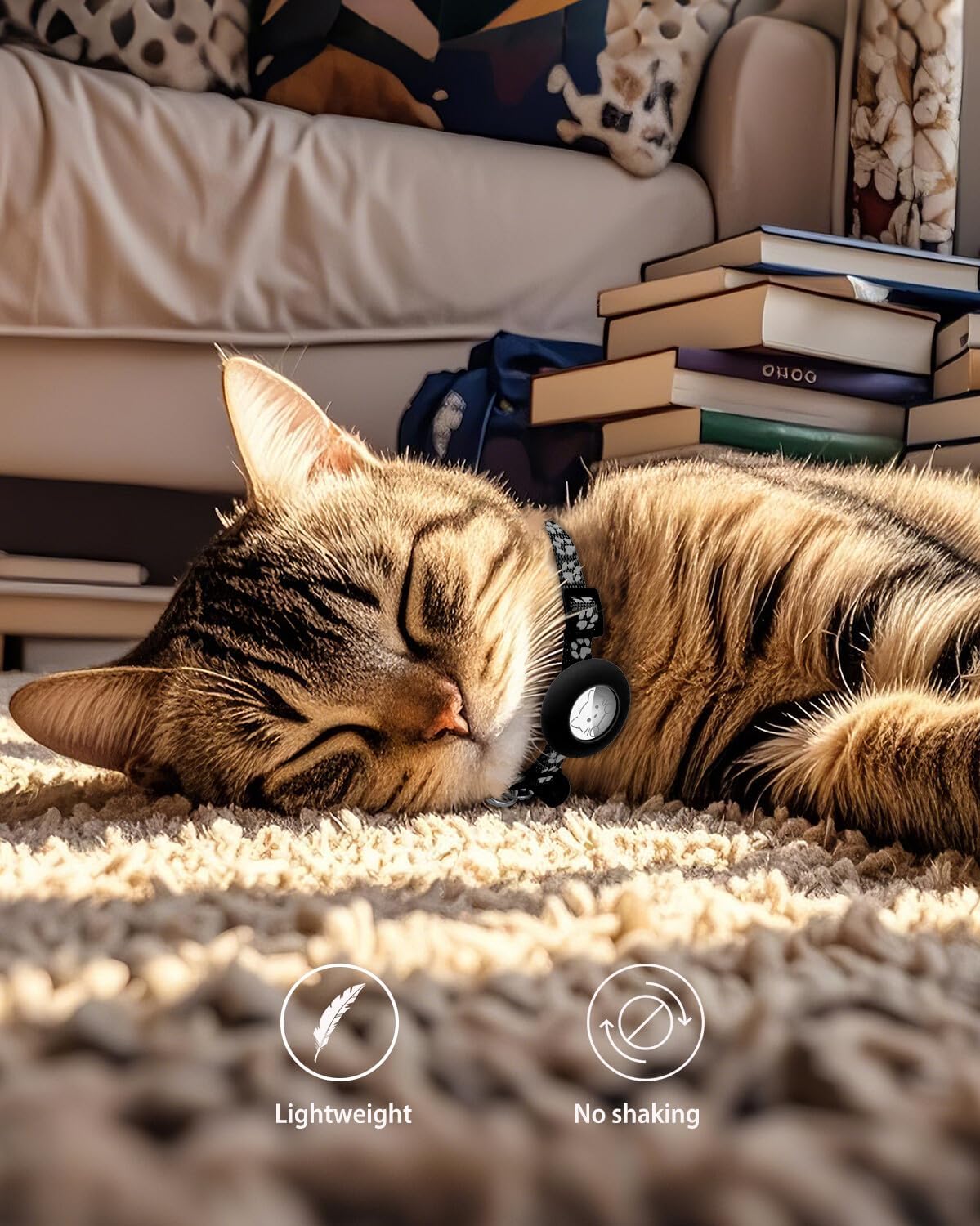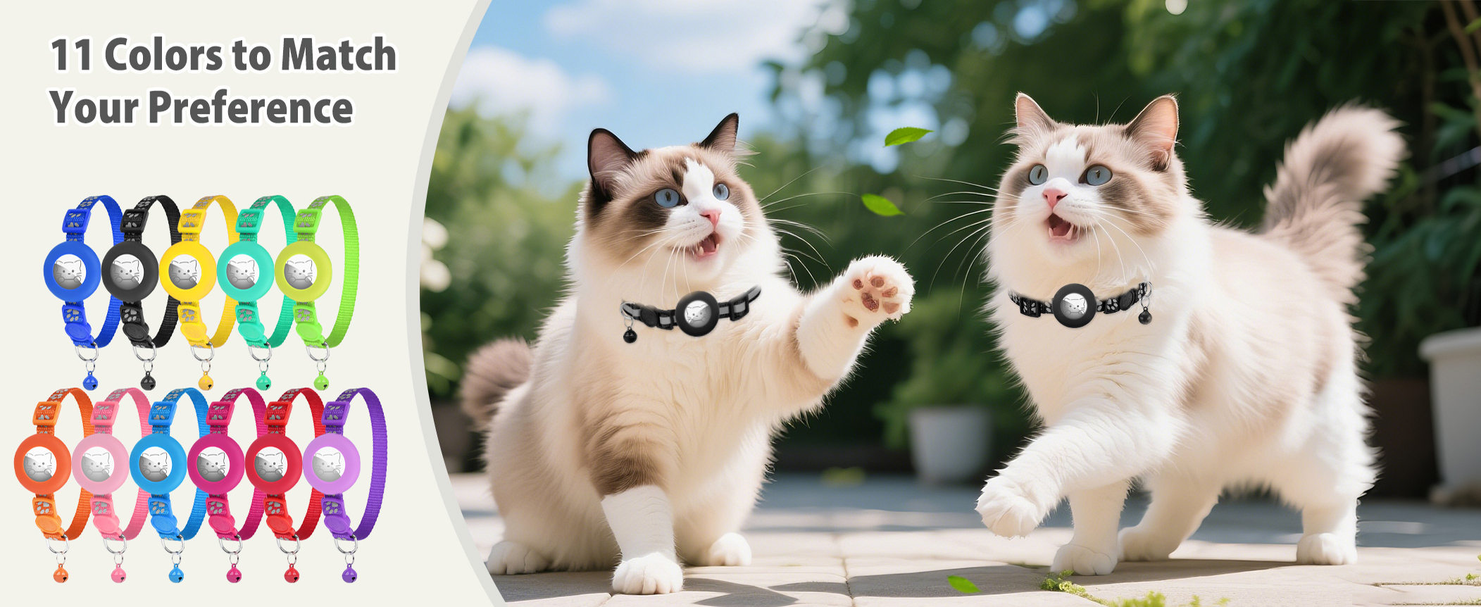 Easy Tracking with AirTag Holder: The cat collar features a secure AirTag holder to keep your tracking device safe and track your cat’s location in real-time Secure Breakaway Buckle: Safety is our top priority, this cat collar breakaway mechanism ensures that if your kitty gets caught on something, it will release to prevent choking, giving you peace of mind High-Visibility Reflective Design: Our AirTag cat collar features reflective strips that enhance your cat's visibility during low-light conditions, ensuring their safety while playing outside at night Lightweight and Comfortable: Weighing only 0.5oz, this cat collar with bells provides a comfortable fit for your cat without weighing them down. Your feline friend can roam freely and comfortably Adjustable & Durable: Designed to fit cats with neck sizes from 7.5 to 12.5 inches and the durable nylon material ensures long-lasting use.Our adjustable collar can grow with your pet › See more product details