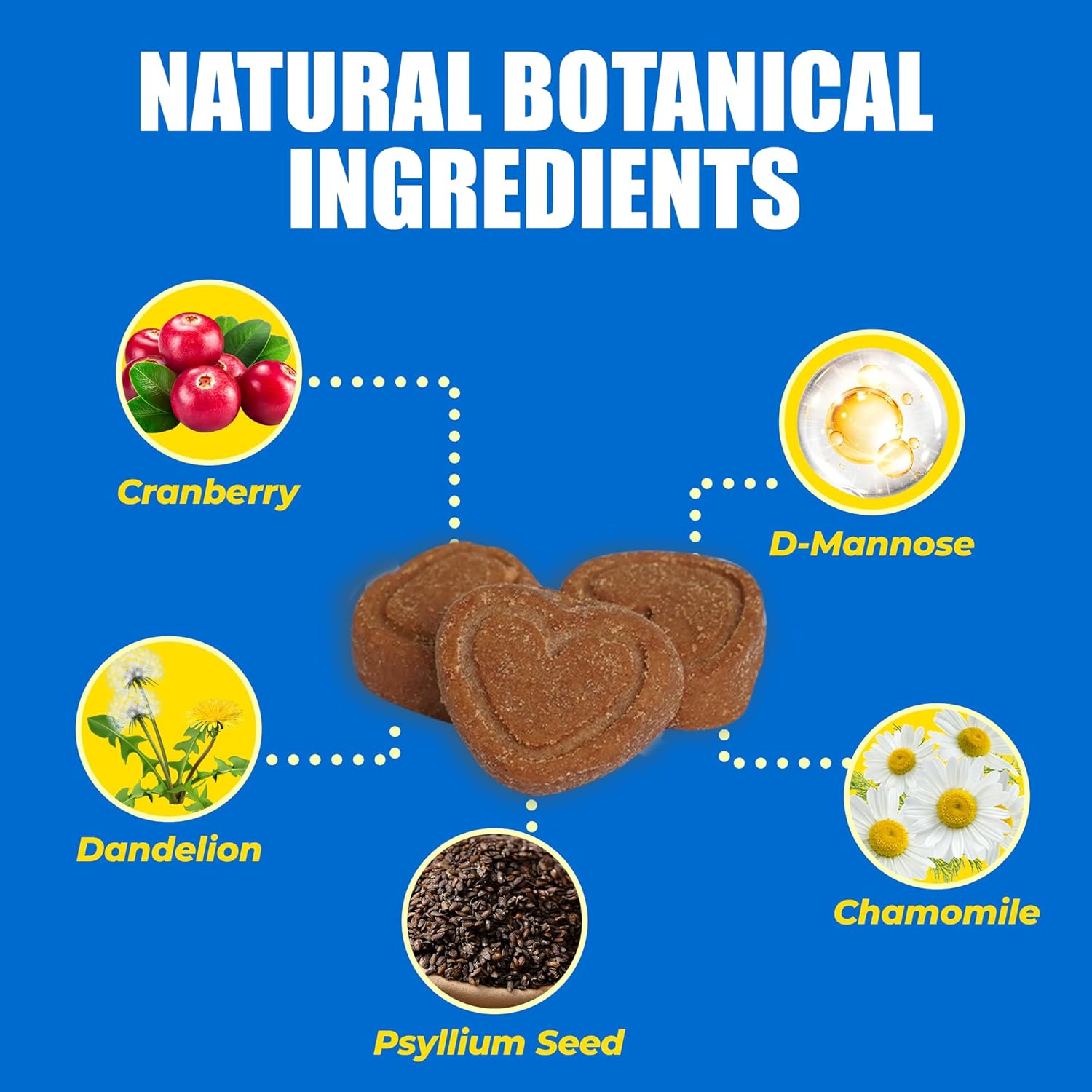 - Active Ingredients: Cranberry, D-mannose, dandelion, glucosamine, chamomile, psyllium seed
