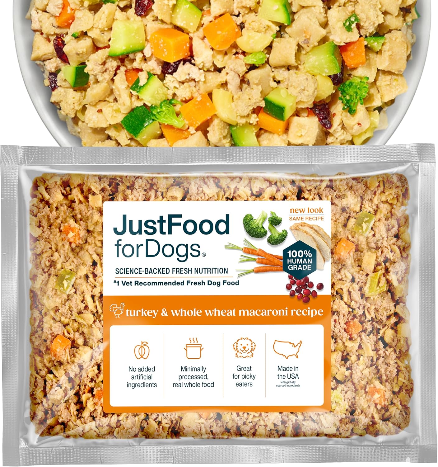 About this item TURKEY DOG FOOD: Our turkey dog food is hand-prepared in open kitchens using lean ground turkey, whole wheat macaroni, broccoli, zucchini, carrots, turkey liver, and cranberries. 100% HUMAN GRADE DOG FOOD: All JustFoodForDogs meals are made with fresh whole foods that are gently cooked for optimal nutrient absorption. PROVEN HEALTHY: Our food is 40% more digestible than kibble. Pet parents have seen improvements in their dog's health, including better digestion, healthier skin & shinier coat, increased energy, easier weight management, and more excitement at mealtime. DOG FOOD TOPPER FOR PICKY EATERS: This frozen fresh dog food can be used as a full meal or dog food topper for picky eaters. #1 VET-RECOMMENDED FRESH DOG FOOD BRAND: We pioneered the fresh dog food category and are the only fresh dog food brand used in clinical research trials. › See more product details
