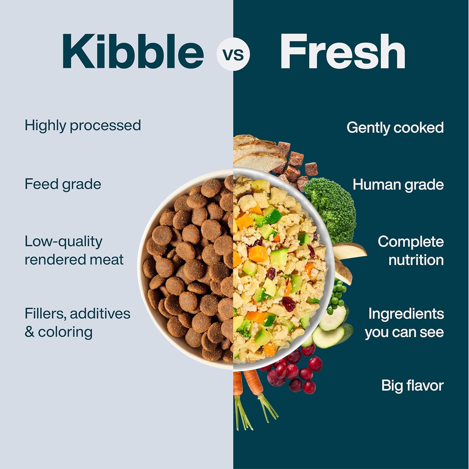 About this item FRESH DOG FOOD STARTER PACK: New to fresh dog food? Try our sampler variety pack! It comes with 6 different nutritious recipes for your dog to try. 100% HUMAN GRADE DOG FOOD: All JustFoodForDogs meals are made with fresh whole foods that are gently cooked for optimal nutrient absorption. PROVEN HEALTHY: Our food is 40% more digestible than kibble. Pet parents have seen improvements in their dog's health, including better digestion, healthier skin & shinier coat, increased energy, easier weight management, and more excitement at mealtime. DOG FOOD TOPPER FOR PICKY EATERS: This frozen fresh dog food can be used as a full meal or dog food topper for picky eaters. #1 VET-RECOMMENDED FRESH DOG FOOD BRAND: We pioneered the fresh dog food category and are the only fresh dog food brand used in clinical research trials. › See more product details