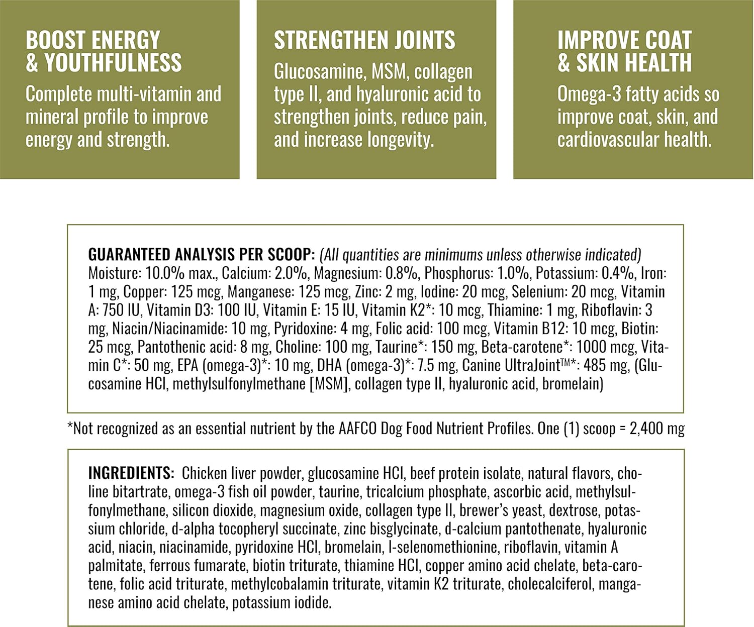Advanced Vitamin Powder - Includes Collagen, Magnesium, and Calcium for Dogs Glucosamine & MSM Joint Supplement - Joint & Cardiac Support for Active Dogs Dog Immune Booster - Nutritional K9 Multivitamin Supports K9 Immunity › See more product details