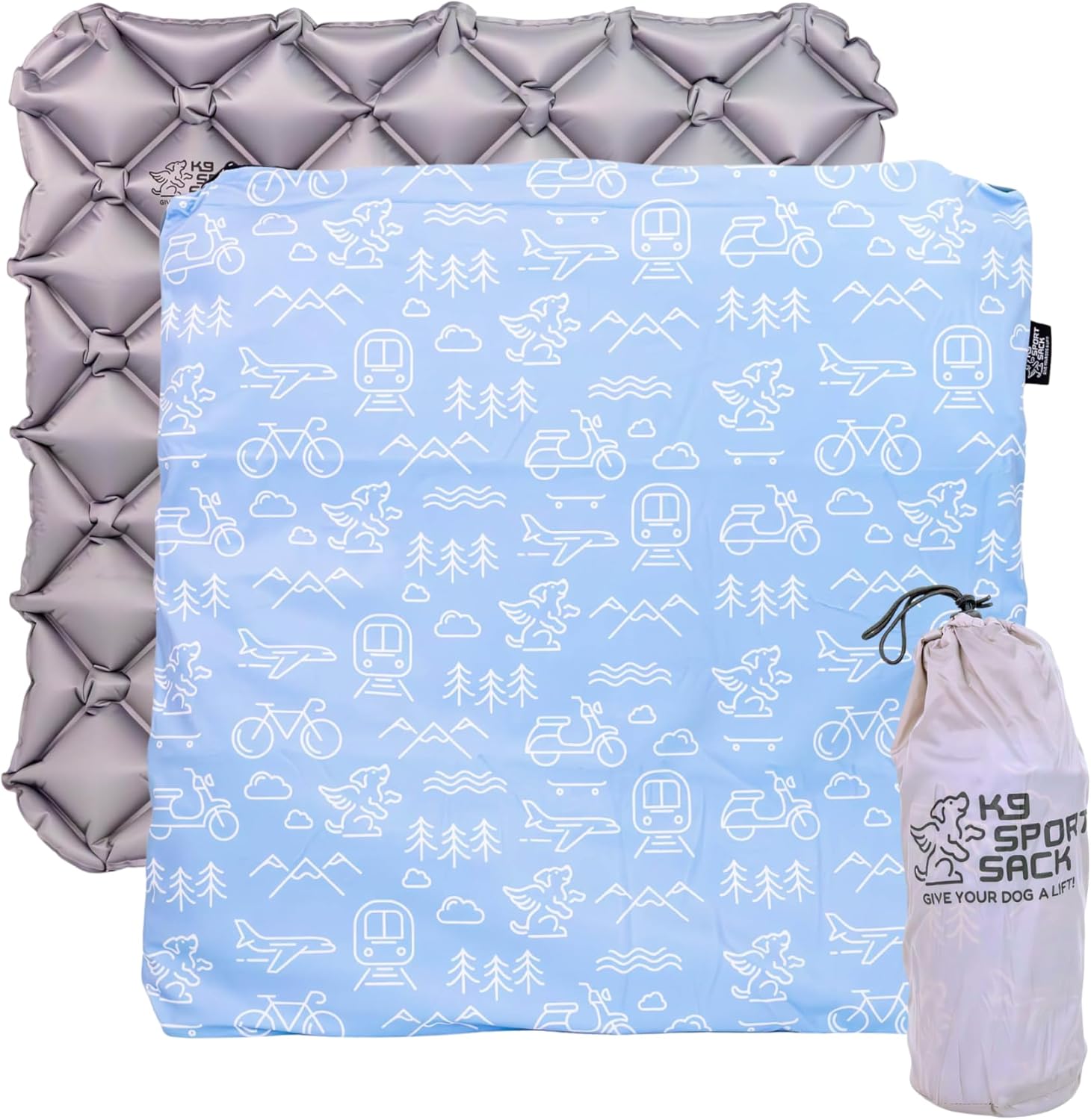 About this item INDOOR & OUTDOOR DOG BED - In line with our mission to include dogs on every adventure, we created the Sleeper to ensure your dog has a comfortable bed, no matter where they are. QUICK, EASY & DURABLE - Thanks to a flush air valve & mildly elastic material, the mattress is quick & easy to use, inflating with just a few breaths. The exterior is soft to the touch, but also strong enough to prevent punctures. MADE TO TRAVEL - Constructed to eliminate the hassle of bulky dog beds when you’re traveling, our lightweight, space-saving design rolls up compactly to fit in the included carrying case, which easily fits into the side pockets of your K9 carrier. INCLUDES SLIP COVER - The soft slip cover not only helps eliminate noise as your dog uses the bed, it increases the durability of the mattress against wear, tear, and punctures. Plus, it’s washable! Simply remove to clean periodically. PERFECT FOR THE POP-UP TENT - This bed is designed to fit into our K9 Pop-up Tent (sold separately) or any other dog kennel. The combo is ideal for hot, sunny days when your dog wants to escape into the shade. AVAILABLE IN TWO SIZES - The Large/Extra Large size is 3” x 28" x 28" when inflated. If you have a smaller dog breed, consider the Small/Medium size. › See more product details