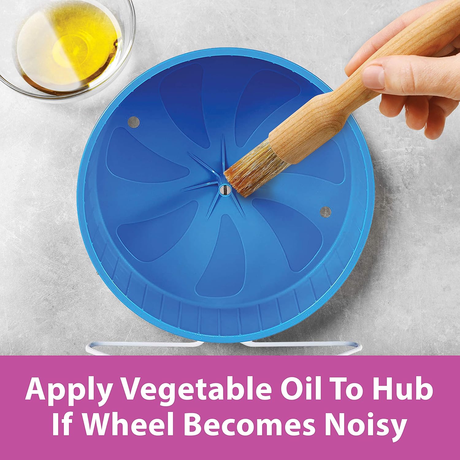 The Kaytee comfort wheel features a safe, solid running surface, quiet operation and a "tail-safe" Design, allowing pets easy entrance and exit. Every comfort wheel comes with a heavy duty wire stand and a 2-way attachment clip, so the wheel can be used either free-standing or clipped to a wire cage. Available in sizes small, large or giant. Colors vary.