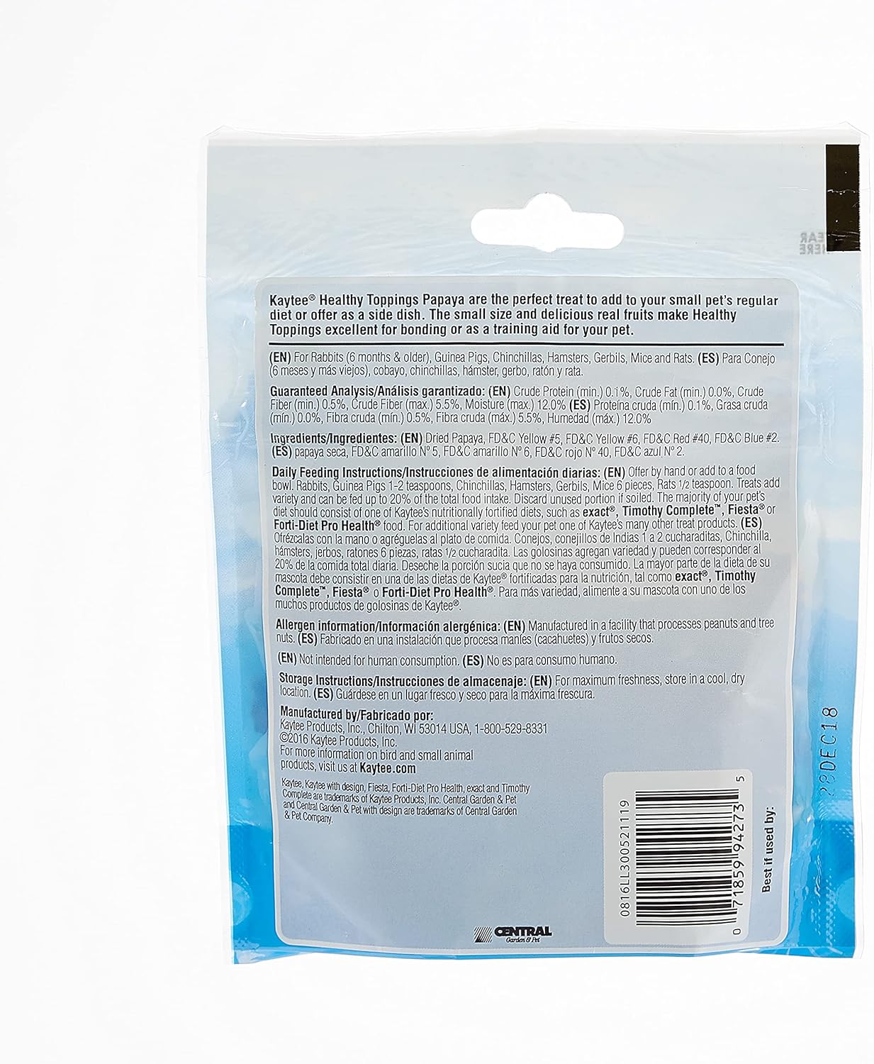 - Included Components: Kaytee Healthy Toppings Papaya Treat for Small Animals 2.5 oz