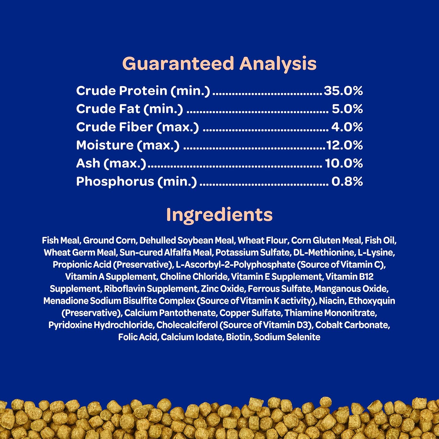 Koi's Choice Premium Pond formula is a highly digestible, floating pellet food that is suitable for all seasons. It provides necessary animal and vegetable proteins, and essential nutrients required for excellent growth, color, health and longevity. Kaytee Koi's Choice formula is nutritionally complete, helps turn your backyard pond or aquarium into a haven for all of your pond fish. Kaytee's Koi's Choice is for Koi, Goldfish and other pond fish. Feeding frequency varies with water temperature and the amount of growth desired. Never provide more food per feeding than will be fully consumed within 5 to 10 minutes. Remove uneaten food. In warm water (above 60°F), feed one to five times daily, increasing the number of feedings as temperature rises or to achieve desired results. In cool water (50 to 60°F), feed one or two times daily. In cold water (below 50°F), feed every other day. Do not feed below 40°F.