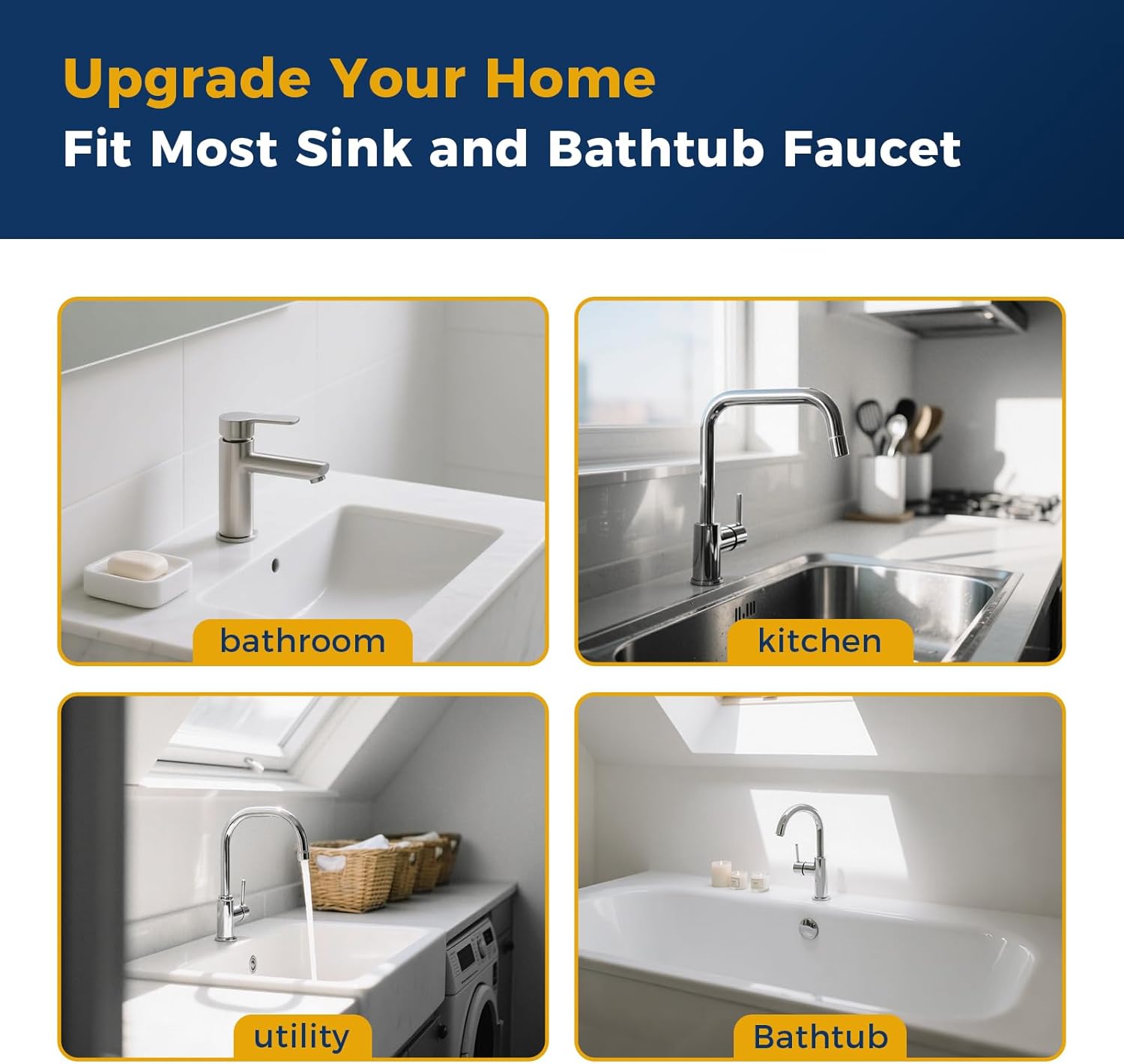 - Special Feature: 6 adapters and after-sales to provide more sizes, Damage-free adhesive holder & 5FT flexible anti-explosion hose, Easy installation with no Leak, Lower cost to update sink/tub faucet shower function, Preserve the faucet’s operation while adding a 4-mode sprayer