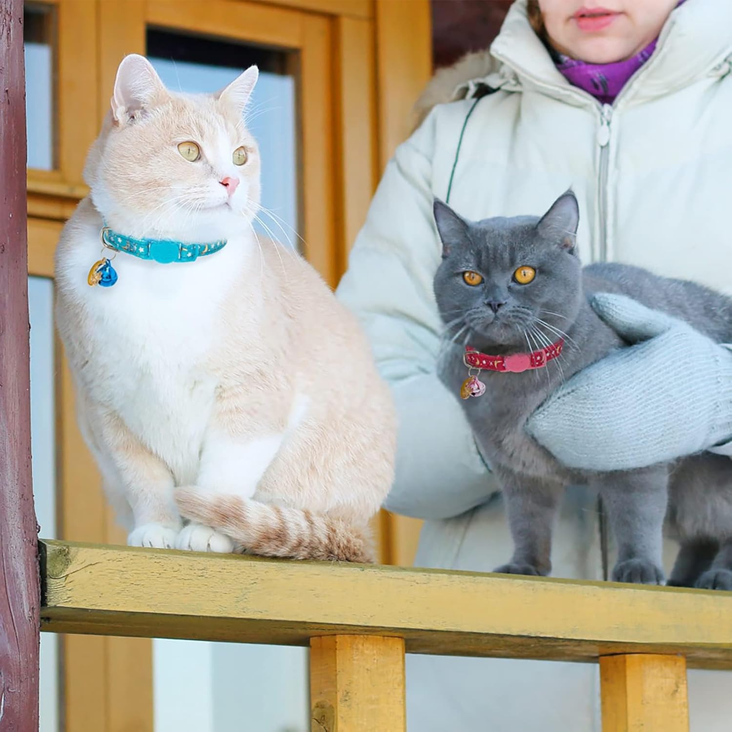About this item Size Suitable - The length of cat collar can be adjusted from 7.9" to 11.8", width is 3/8". Suitable for most breeds of cats and small puppies. Please measure your pet's neck girth carefully before purchase. Charming Pendant - Each collar is with a delicate metal pendant in the unique shape of a star & moon and a bell which can make your cat more cute and fashionable. Of course, they're removable, so you needn't worry about the noise. Quality Material - The soft ribbon material will give your lovely cat the most gentle care, soft, comfortable and skin-friendly touch. The lightweight collar does not make the cat feel uncomfortable, nor does it affect the movement of the cat. Glow in the Dark - Stars & moon pattern was printed on the surface of collars, the stars can glow in the night and the golden moon would add elegant temperament to your cat. 6 Packs - 6 pack collars with different colors. This would be the best gift for your kitty. The collars are equipped with cute breakaway buckles which will open when under pressure, so don't worry about suffocating or being injured. › See more product details
