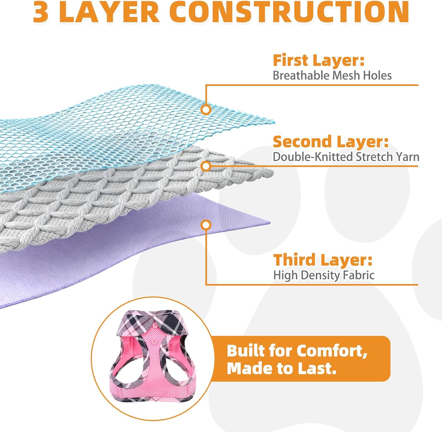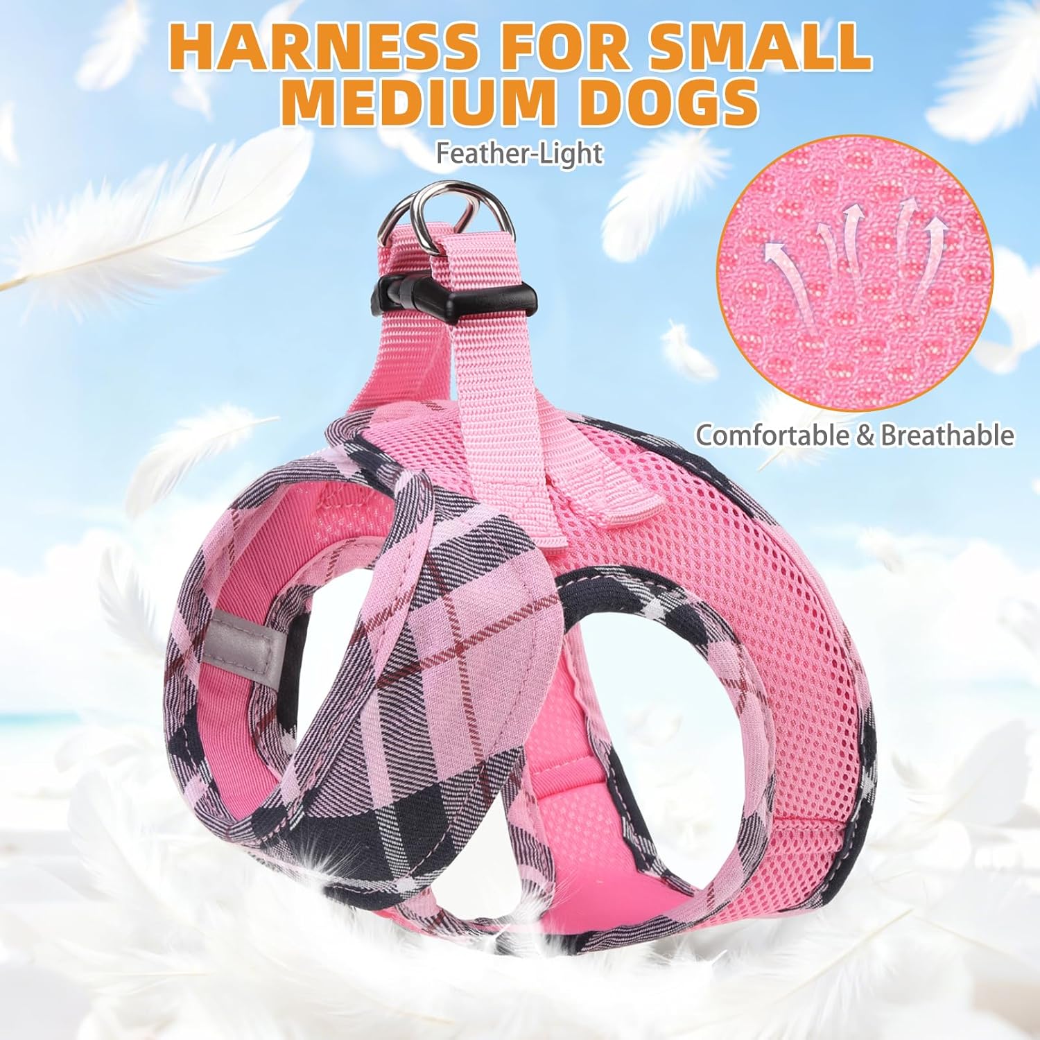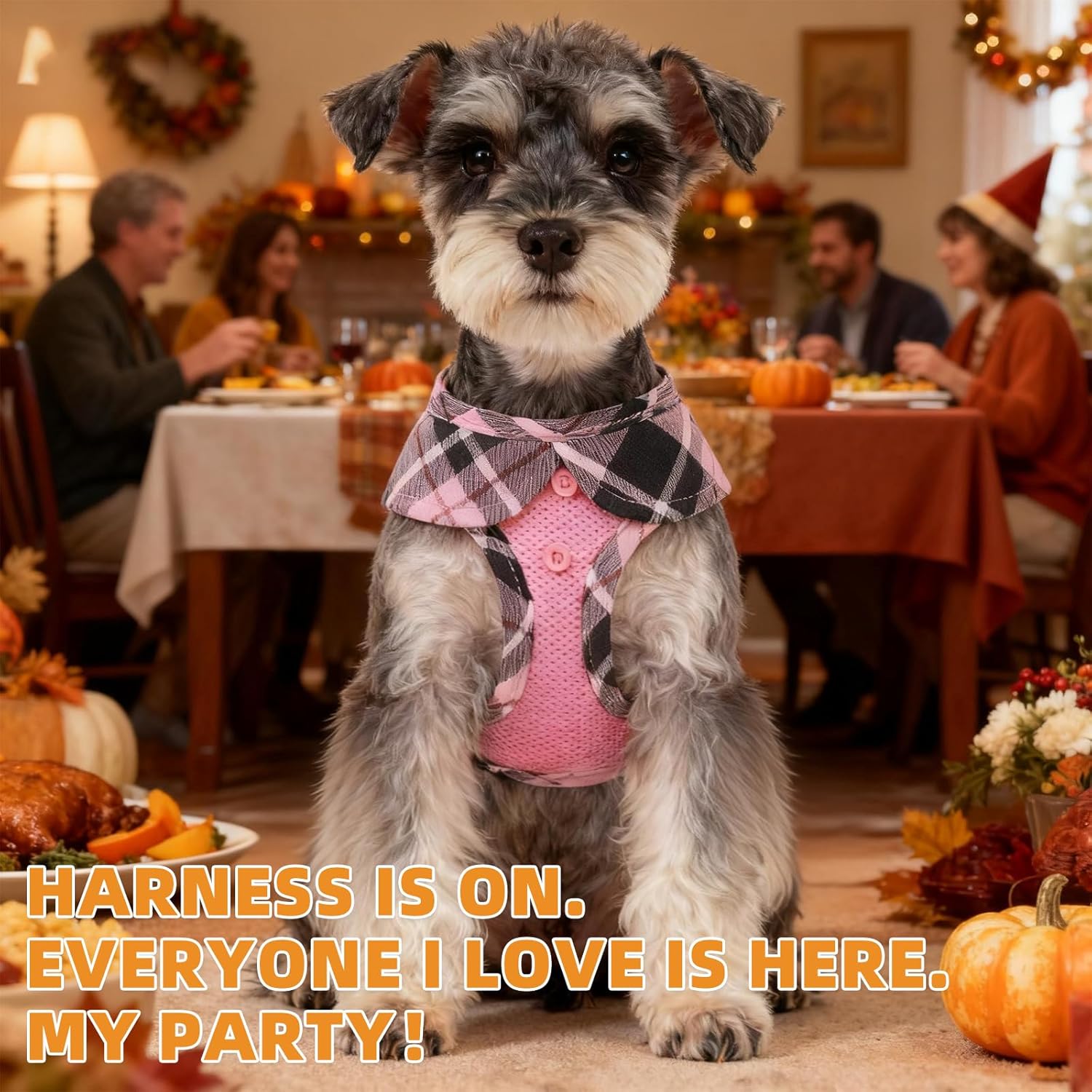 About this item SIZE INFO - XS: Chest Girth 13-14.5 Inches, Leash Length 1.5 Meters; For the best fit, measure your pet first and check our size chart before purchasing—if between two sizes, choose the larger one; Suitable for small dogs (e.g.,Chihuahua,Poodle,Pomeranian,Teacup Dog) and cats. ALL-DAY BREATHABLE COMFORT: Crafted with quick-dry fabric and breathable mesh panels, paired with soft edge binding, this harness ensures the chest and back straps fit lightly and snugly without rubbing your dog’s skin—even during extended wear, your pup stays cool and dry during daily activities; the ultra-lightweight design is made specifically for all-day comfortable wear, and the included heavy-duty leash is durable enough for long-term use. EASY ON & OFF, PERFECT FIT IN SECONDS: Simply let your dog slip its paws through the openings, then fasten the adjustable hook-and-loop closure on the back to achieve a perfect, tailored fit in just seconds—say goodbye to tangled, complicated straps and enjoy a secure, comfortable custom fit in no time. DOUBLE SECURITY, STABLE PROTECTION: Equipped with sturdy double D-rings, the dual-connection structure effectively tightens the overall fit to prevent your dog from breaking free or pulling suddenly; whether for outdoor training or daily walks, it ensures safety while giving your dog a more natural gait and greater freedom of movement. COLLAR STYLE, ADORABLY STANDOUT: The unique collar-style design instantly turns your pet into a fashion focal point—it’s not only cute and eye-catching for daily wear but also ideal for special occasions like weddings, family gatherings, and birthday parties, making your dog the center of attention. › See more product details