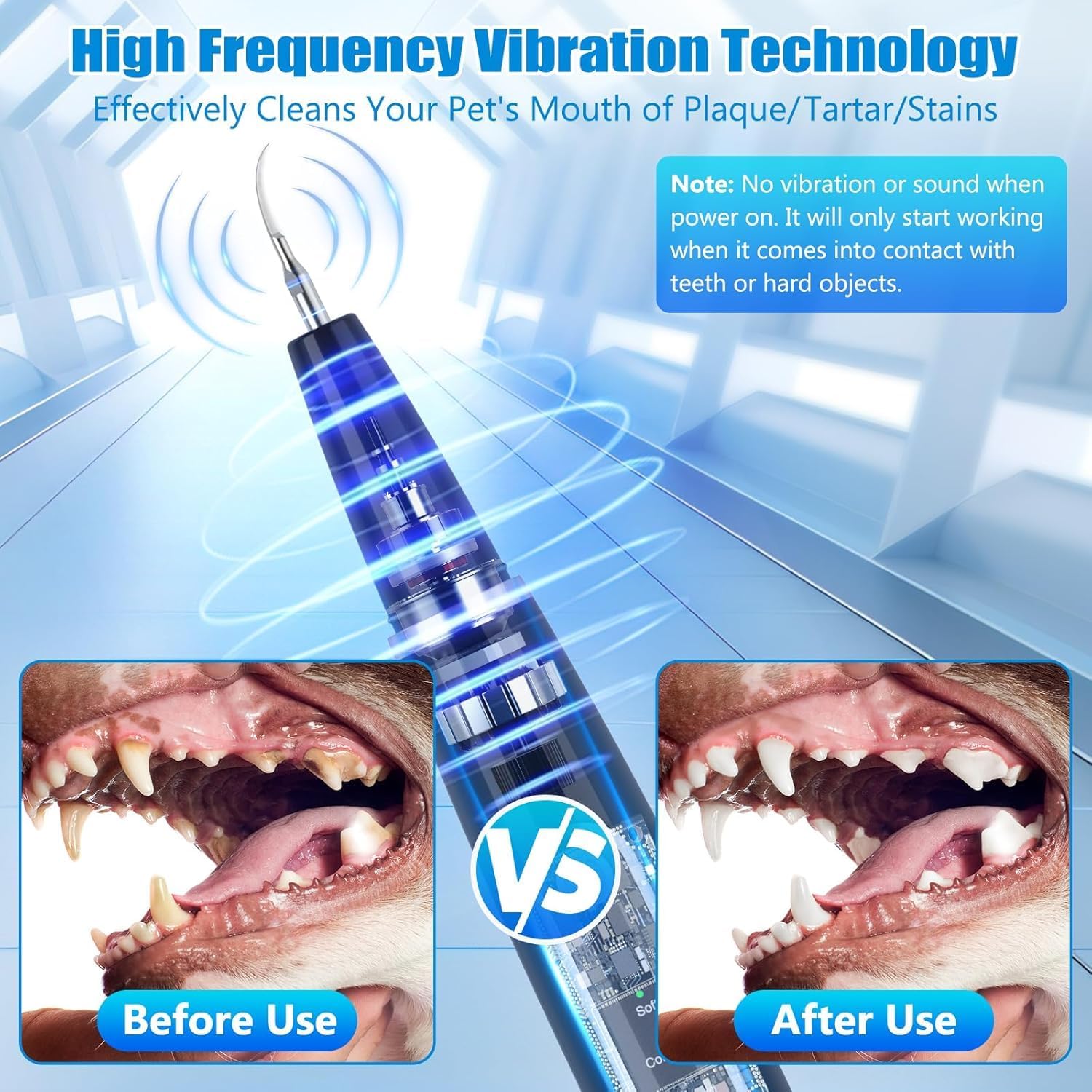 Keep your pet’s smile healthy and fresh with the Ultrasonic Pet Teeth Cleaning Kit a powerful, portable solution for at-home pet dental care.This cordless ultrasonic tooth cleaner for dogs & cats effectively reduces plaque and tartar while being gentle on gums. With 6 adjustable cleaning modes and a user-friendly design, it’s perfect for pets of all sizes and sensitivities. Say goodbye to bad breath and costly vet cleanings — maintain healthy teeth and gums from the comfort of home.Advanced Ultrasonic Cleaning: High-frequency vibration breaks down plaque, tartar and surface stains without damaging enamel or irritating gums.Portable & Cordless: Lightweight electric design lets you clean anywhere — at home or on the go — for convenient dog teeth cleaning and maintenance.6 Adjustable Modes: From gentle care to deep cleaning, choose the right intensity for puppies, adult dogs, and cats to maximize comfort and results.USB-C Fast Charging: Modern charging port for quick and universal power — no special chargers required.Safe for Dogs & Cats: Engineered for multi-pet households; promotes fresh breath, healthier gums, and long-term oral hygiene.How to use: Power on, select an appropriate cleaning mode, and gently apply the ultrasonic cleaner to the teeth and gumline. Use short sessions and follow the included user guide for best results. For sensitive pets, start at a lower mode and increase as tolerated.What’s included in the box:1 × Ultrasonic Electric Pet Tooth Cleaner1 × USB-C Charging Cable1 × User Manual / Instruction GuideWhy choose this kit? This all-in-one pet dental care solution combines professional-grade ultrasonic cleaning with a portable, easy-to-use design-perfect for pet owners who want an effective plaque & tartar remover that’s safe for daily use. Keep your pet’s mouth healthy, breath fresh, and smile bright.Order now and start protecting your pet’s oral health today — the convenient, effective way to support dental wellness for dogs and cats.