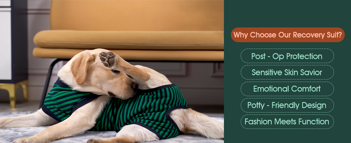 About this item Size Guide: XS (Back:8.3-11.4'', Weight:4-7 LB), S (Back:11.4-13.4'', Weight:7-15 LB), M (Back:13.4-16.1'', Weight:14-25 LB), L(Back:16.1-20.1'', Weight:23-48 LB), XL (Back:20.1-24.8'', Weight:42-75 LB), XXL (Back:24.8-29.5'', Weight:70+ LB). Our XS and S sizes are suitable for cats. Tailored for Pet Recovery: Crafted from high-quality, soft, and breathable fabric, this dog bodysuit is elastic and durable, providing a comfortable wearing experience for your canine companion during the recovery period Cone Alternative: Say farewell to the cone of shame! Kuoser dog onesie serves as an excellent alternative, helping your pet's abdominal wounds and enhancing mobility while preventing them from licking their wounds Versatile Usage: Can be used as post-surgery clothing, sterilization attire, weaning outfit, spay/neuter suit. It's also suitable for managing skin problems, hot spots, allergies, and controlling shedding Easy to Wear: When your dog needs a bathroom break, remove and secure the tapes with provided instructions, aiding wound recovery. Made from machine-washable materials, it's completely safe for your pet › See more product details