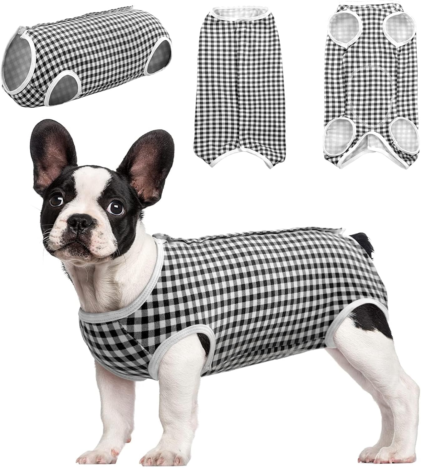 About this item Breathable Fabric: Made of 95% cotton and 5% spandex, dog recovery suit female male is super breathable, elastic and light, washable and dry quickly. This dog recovery suit is designed to promote the wound healing process E-collar Alternative: Kuoser dog surgery suit for female spay is an alternative to cones and E-collars, allowing dogs unrestricted access to play and eating, while also providing pets with warmth during the surgical period and post-operative stage Multi Size: 5 size for choose, XS to XL fits for small medium large dogs. To better fit your pet, please measure the size and compare to the size chart before placing order Effectively Help:This dog recovery suit is designed to protect pets from potential harm.Prevent pets from licking wounds.Can also be used as a favorite home clothes with complete freedom of movement Unique Design: Kuoser dog surgical recovery suit male conforms to the dog's body structure, are designed with row buttons, easy to wear and take off. For male dogs, there is circle on the suit bottom that can be cut, convenient to physiological needs › See more product details