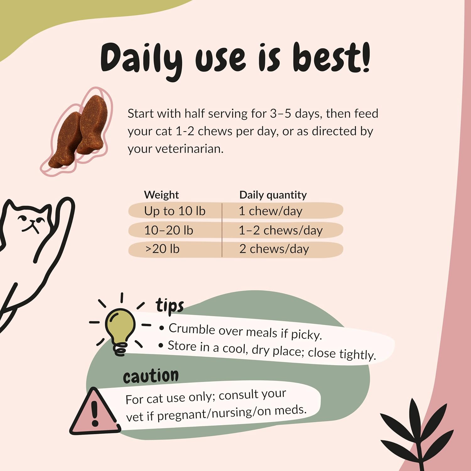 The Furry Pack L-Lysine For Cats Soft Chews: Easy Daily Immune Support Without the StruggleTrying to keep up with a daily cat lysine supplement can be exhausting when powders are messy, pills are refused, and bowls come back with untouched food. Missed servings, stressed cats, and wasted product make it hard to stay consistent, especially when you care for more than one feline and want each of them to get reliable l-lysine for cats every single day.Key Features:Each soft chew delivers 250mg of l-lysine for cats in a savory chicken flavor, giving you clear, easy-to-measure support for cats and kittens.Value-sized 150-count jar provides plenty of lysine for cats for ongoing routines, multi-cat homes, and convenient autoship scheduling.Soft, chewy texture turns cat lysine into treat-like rewards that are easy to chew, simple to break apart, and appealing even for picky eaters.Versatile lysine treats for cats can be offered by hand, used as training rewards, or crumbled over food for cautious or hesitant snackers.L-lysine for cats made in USA, crafted as an everyday cat immune support supplement you can easily add to your routine.Our l-lysine chews for cats are designed for real life, where time is limited and cooperation matters. Offer them as cat lysine treats during playtime, after grooming, or whenever you already share snacks. Whether you search for l-lysine cat our chewable formula helps you provide consistent, mess-free support for normal immune function and overall wellness without scoops, powders, or hidden tablets.Make supplement time the easiest part of your day and add The Furry Pack L-lysine for cats chicken flavor chews to your cart now and enjoy reliable, stress-free immune support in every soft bite.