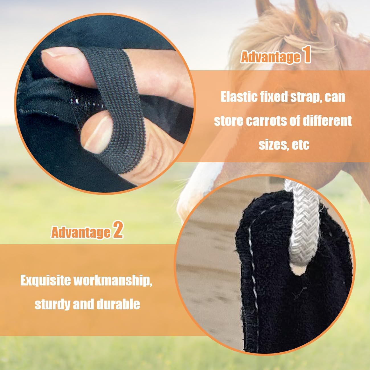 INNOVATIVE DESIGN: The black feeding ball is designed to be hung in the stable and features some elastic straps, allowing you to easily secure carrots, hay, or other snacks, promoting horse natural foraging behavior and encouraging exercise while eating. It's provides an excellent solution to keep your horses or goats engaged and active PROMOTE TRAINING AND ENTERTAINMENT: This hanging toy is a fantastic tool to avoid boredom and stress relief. By offering a fun and interactive way to eat, it helps keep your horses happy and content, making it an ideal choice for stall rest. Please note that our product is not intended to replace a traditional feeder, it just serves as an training and enrichment toy for the overall well-being of livestock VERSATILE AND EASY TO USE: The carrot feeding ball is easy to set up and maintain. Simply hang it in the stable, fill it with treats, and observe animals to enjoy. Its versatile design makes it suitable for various settings, whether in a stable, barn, or paddock MATERIAL & SIZE: Crafted from soft fabric with a grid patchwork process, this feeding ball is lightweight and durable, ensuring it can withstand daily use and providing a comfortable experience for animals. The size is 6.25in/15cm in diameter and 21.65in/55cm in length PACKAGE INCLUDED: 1 x carrot feeding ball (other decorative items shown in pictures are NOT included) › See more product details