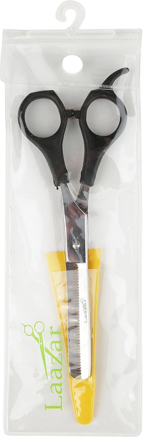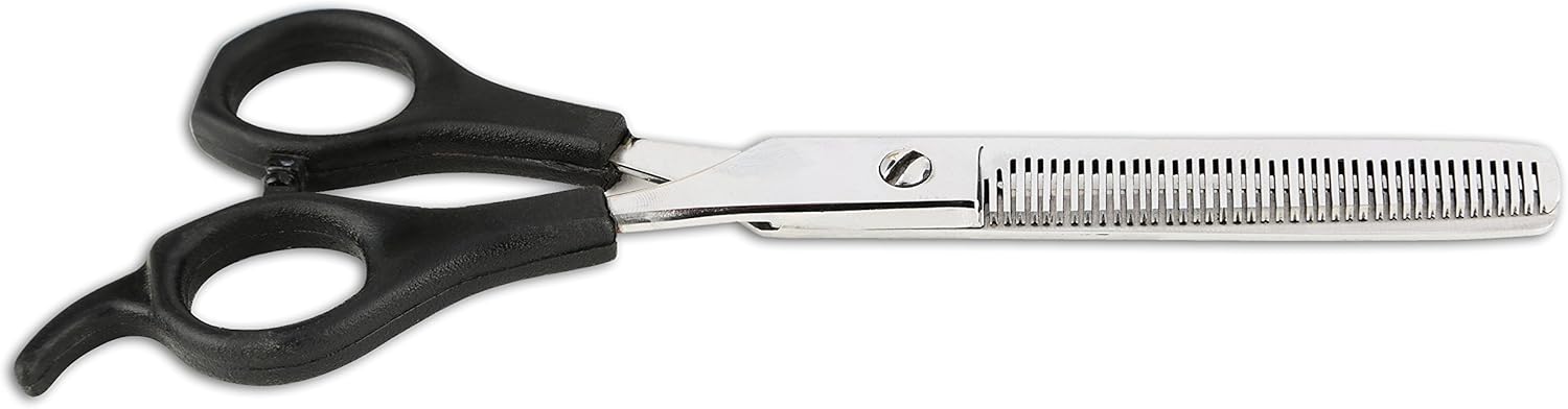 Laazar Brand specializes in quality blades for a good price. This 6.5 Inch 42-T Pet Thinning Scissors has a plastic handle with attached finger rest for ease of use on your hands.Thinning Shears are essential with the thicker coated pet breeds. Use to ease mat and tangles and result in a smoother thinner coat. Blends nicely for a smart groomed look. Blade is of quality and sharpness for a great dog / cat groom or just a trim.