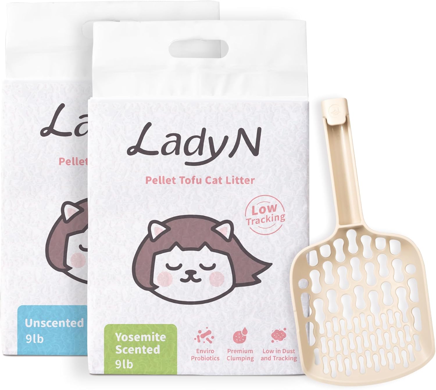About this item Immerse your senses in the tranquility of the great outdoors with our Yosemite-scented cat litter. This blend captures the essence of pristine forests, offering a harmonious mix of woody undertones and fresh herbal notes. Experience the crisp, natural scent that evokes memories of wandering through Yosemite National Park's lush landscapes. With every use, bring a breath of fresh air into your home, creating a serene environment that both you and your cat will love. Dust-free and Low-tracking: Our litter undergoes five thorough dust-removal processes, safeguarding your cat's respiratory health and keeping your floors spotless. Breathe easy while maintaining a clean environment. Quick Strong Clumping and Ultra 2.5 Times Absorbent: Lady N Cat Tofu Litter offers rapid and robust clumping, making cleanup a breeze. Our tofu litter boasts 2.5 times greater absorbency than traditional litter, keeping your litter box cleaner longer. Efficient 8-Shaped Hole Design: Featuring a unique 8-shaped hole design, this scoop efficiently sifts out clumps or crumbles from your cat's litter box. Say goodbye to tedious scooping and hello to a quick and effective cleaning process. Bigger Surface, Double the Efficiency: With a larger surface area, our scoop allows you to tackle multiple clumps at once, doubling up on efficiency. Spend less time cleaning and more time enjoying quality moments with your feline friend. › See more product details