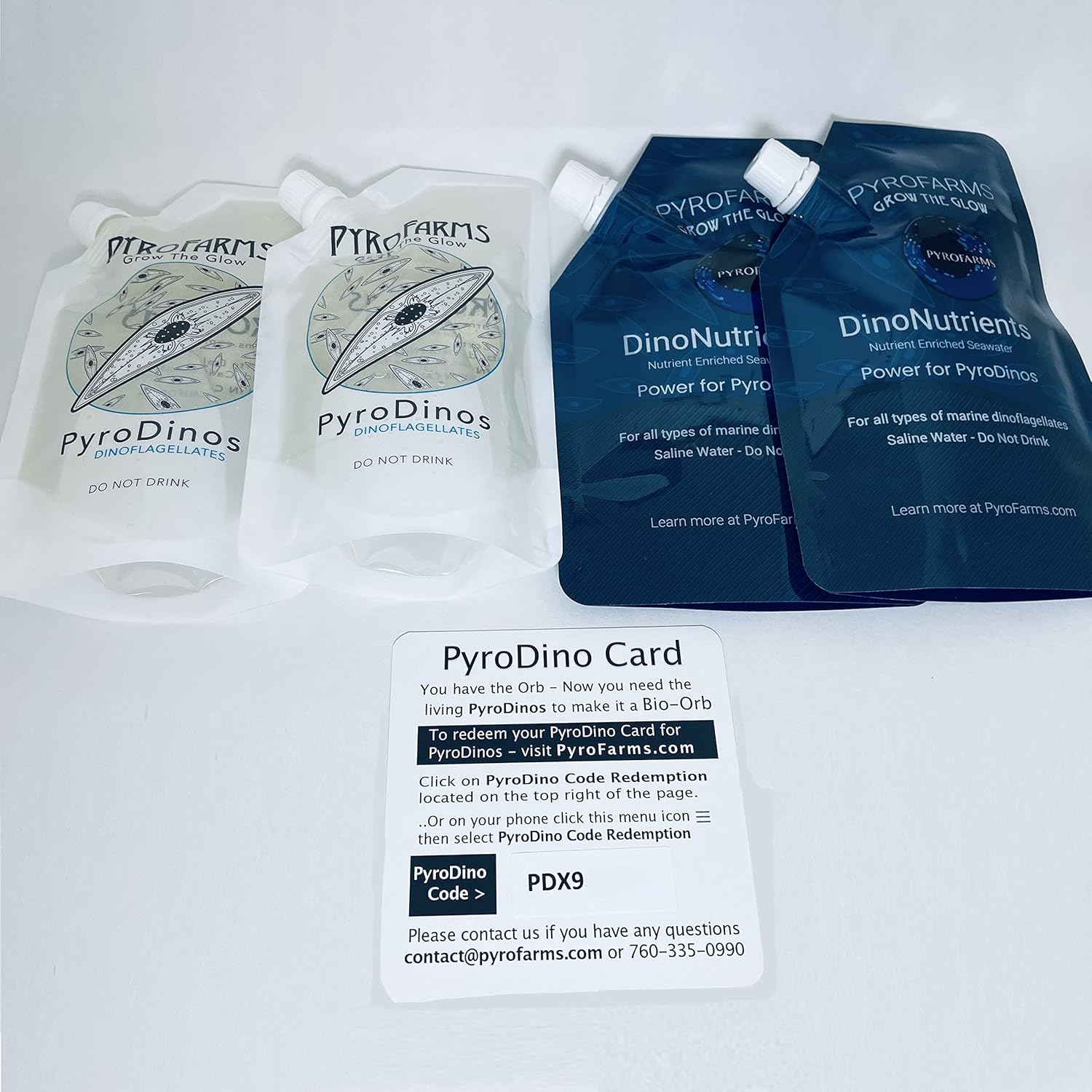 About this item This is the Large Glowing Bio-Orb Gift Option, the best way to gift a Bio-Orb (US only). Includes PyroDino coupon that can be redeemed for free PyroDinos and DinoNutrients The Large 6-inch Bio-Orb absorbs room lighting and CO2 during the day, like a plant. The Bio-Orb requires daily light (like a plant) At night in the dark, the Large Bio-Orb produces natural light (bioluminescence). Only during nighttime hours (after 7pm). Only while swirled Filled with plankton (living sea plants) that clean your air : add oxygen and removes greenhouse gases (CO2) and toxins The Large Bio-Orb Gift Option does not arrive with living algae (PyroDinos). Instead the Gift Option version comes with a redeemable coupon for FREE PyroDinos (US Only) › See more product details
