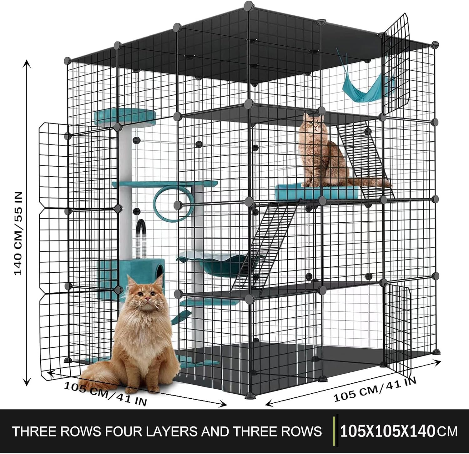 Cat Cage Indoor Enclosure - Spacious DIY Pet Playpen with Metal Wire Kennel, Extra Large Hammock & Sturdy Platforms for 1-2 Felines Ferrets Chinchillas Rabbits Small Pets