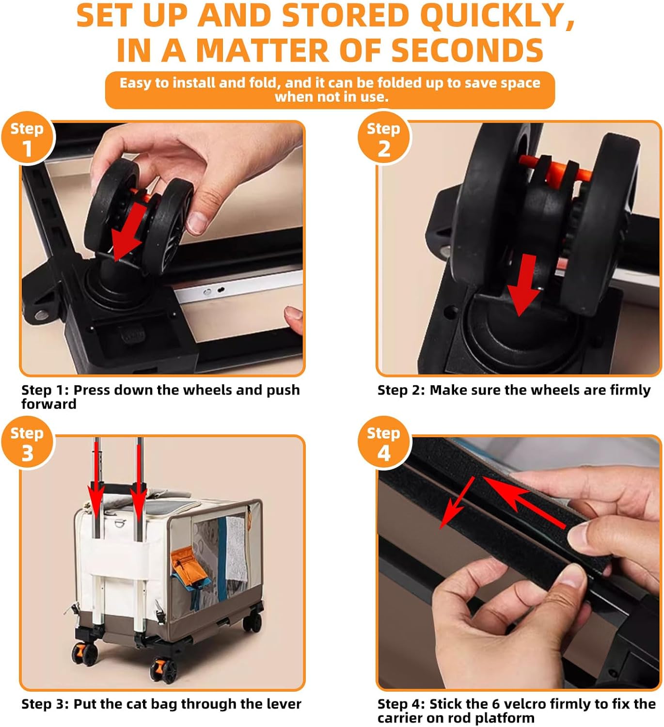 About this item DUAL COMPARTMENT DESIGN: Spacious pet carrier measuring 24 x 12.99 x 12.99 inches with separate compartments. Our double-compartment cat carrier can hold two small pets or one small-to-medium-sized pet. The divider can be removed to switch between double and single compartments in a few seconds. The double-compartment pet rolling carrier can hold two 18-pound pets or one 35-pound pet. The soft-sided carrier is made of durable cation linen and high-grade polyester that is anti-scratch. (Note: It may not meet airline requirements due to its large size.) WHEELED MOBILITY CATS ROLLING CARRIER: Our pet carrier is equipped with 4 wheels that can be conveniently disassembled and assembled. Smooth-rolling mobility in any direction is ensured by the wheels. The telescoping handle extends easily and smoothly, and the length can be adjusted to accommodate varying heights. Extra stability and durability are provided by the high-quality polyurethane double wheels. (Telescopic length: 55–99 cm/21.65–38.97 in.) VENTILATED CONSTRUCTION: This rolling pet carrier is designed with a roll-up flap and an openable side window. This makes it easy to feed or hydrate your pet without fully opening the backpack. The backpack provides good ventilation and visibility to keep your pet comfortable on the go while allowing you to easily interact with them. SAFETY FEATURES: The pet carrier is equipped with a five-layer zipper lock system to enhance security and prevent escape. A large-capacity storage pocket keeps small essentials neatly organized and within reach, making outings smoother and more convenient. TRAVEL CONVENIENCE: Weighs only 6.7 pounds, includes detachable shoulder strap, soft wool pad, and folds flat for easy storage when not in use. The pet carrier with wheels comes with a telescoping handle and an adjustable, no-slip shoulder strap for easy pulling and pushing. This pet rolling carrier can be pulled, loaded in a car, or hand-carried. 【Measure Your Pet Before Purchase】Please carefully read the product dimensions and measure your pet before purchasing. The maximum dimensions are 61*33*33 cm (24.4*12.99*12.99 in). It is suitable for holding two small pets under 20 lbs or one medium pet under 25 lbs. If you have any questions, please feel free to contact us. › See more product details