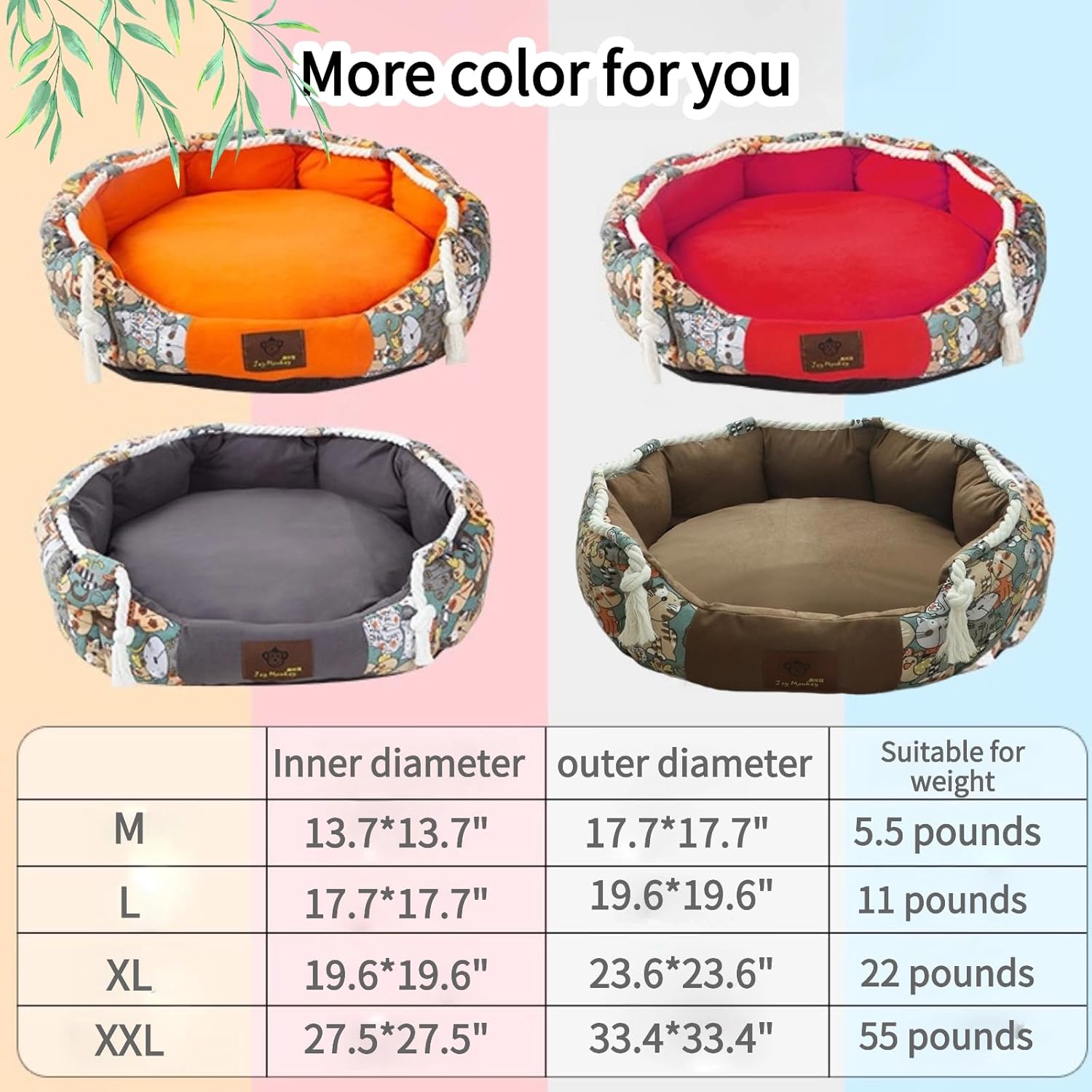 Give your furry companion a plush retreat they’ll love with this adorable Round Plush Cat & Dog Bed — the perfect combination of cozy comfort, durability, and fuss-free care. Designed with everyday comfort in mind, this bed features a soft plush exterior filled with warm PP cotton to create a cushioned spot your pet can curl up, stretch out, or snooze in through all seasons. The independent removable cushion makes cleaning easy: just unzip and wash for a fresh sleeping surface that stays inviting and hygienic. Multiple size options ensure a perfect fit for your pet — from smaller cats and puppies up to ~11 lbs (L), to medium companions up to ~22 lbs (XL), and larger small/medium dogs up to ~55 lbs (XXL). Built with durable cotton fabric that resists everyday wear and tear, this bed holds up well to playful use while remaining soft and inviting. The anti-slip Oxford cloth bottom keeps the bed secure on hard flooring, and moisture-resistant properties help protect both bed and floor from drips or accidents.