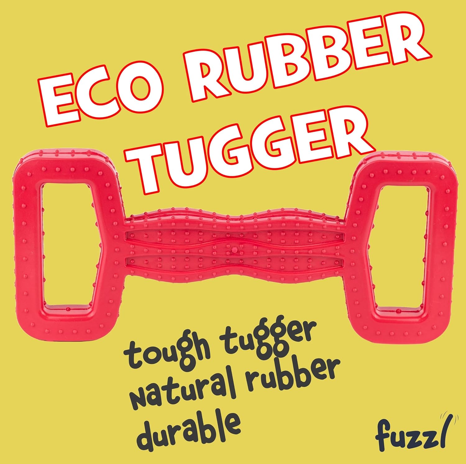Perfect solution for aggressive chewers. Made from tough, natural rubber, it's designed to withstand even the most enthusiastic chewing and tugging. It's also incredibly safe, resisting breakage and keeping your dog's health in mind. Plus, the wider design ensures your hands stay safe during playtime. This versatile toy is perfect as both a tug toy and a chew toy, appealing to dogs with its natural rubber scent and texture. Whether you have a playful puppy or a powerful adult dog, this toy provides long-lasting fun and engagement. It's also ideally sized for large breeds, making it a great choice for all kinds of dogs who love to play. The Fuzzl Eco Rubber Tugger is a virtually indestructible dog toy from Fuzzl. Perfect for small, medium and large dogs