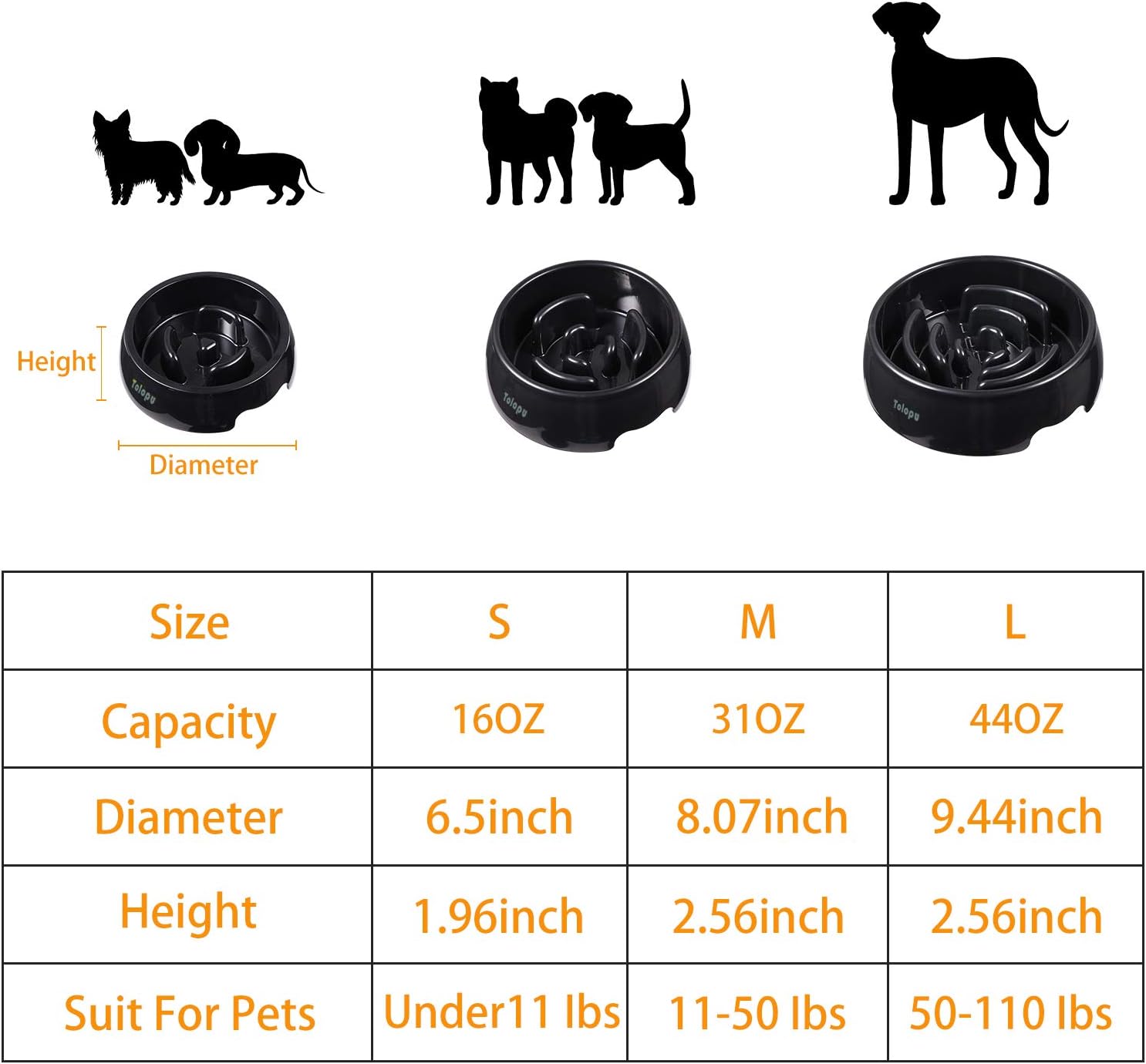 About this item 1. Slow down rapid eating: Slow feeder dog bowls can let your pets slow feeding itself, Prevents bloating and indigestion, Keep healthy; 2. Funny Slow Feeding Bowls: Unique design can make your pets eating funnily, keep happy and help it promoting intelligence; the feed bowl suit for dry or wet food; 3. Safe Material: The slow feeder bowls are made of ABS which is non-toxic, harmless but durable and recyclable; 4. Easy to clean: Gloss surface make cleaning of the bowl is very easy, it not only save your time but also keeps the bowls clean and healthy; 5. Many size for your choice: Small slow feeder dog bowls for pets under 11lb ; Medium slow feeder dog bowls for pets between 11lb to 50lb; Large slow feeder dog bowls for pets between 50lb to 110lb, Please select your correct size and check it. › See more product details