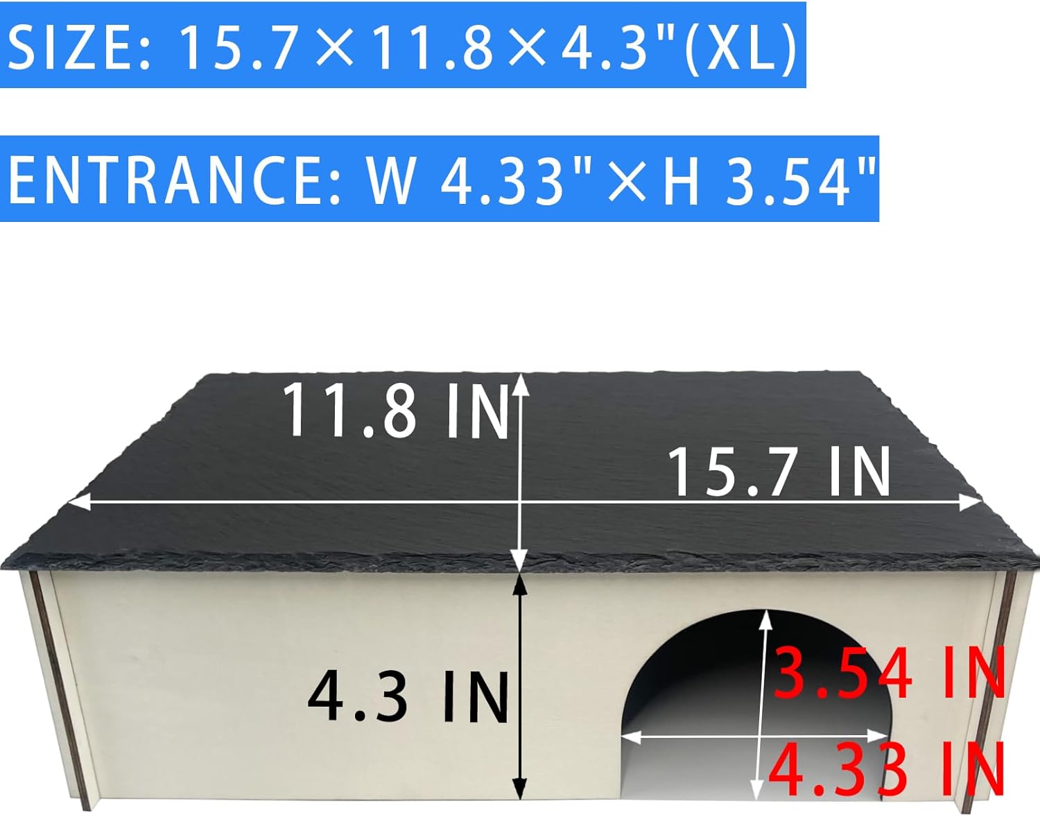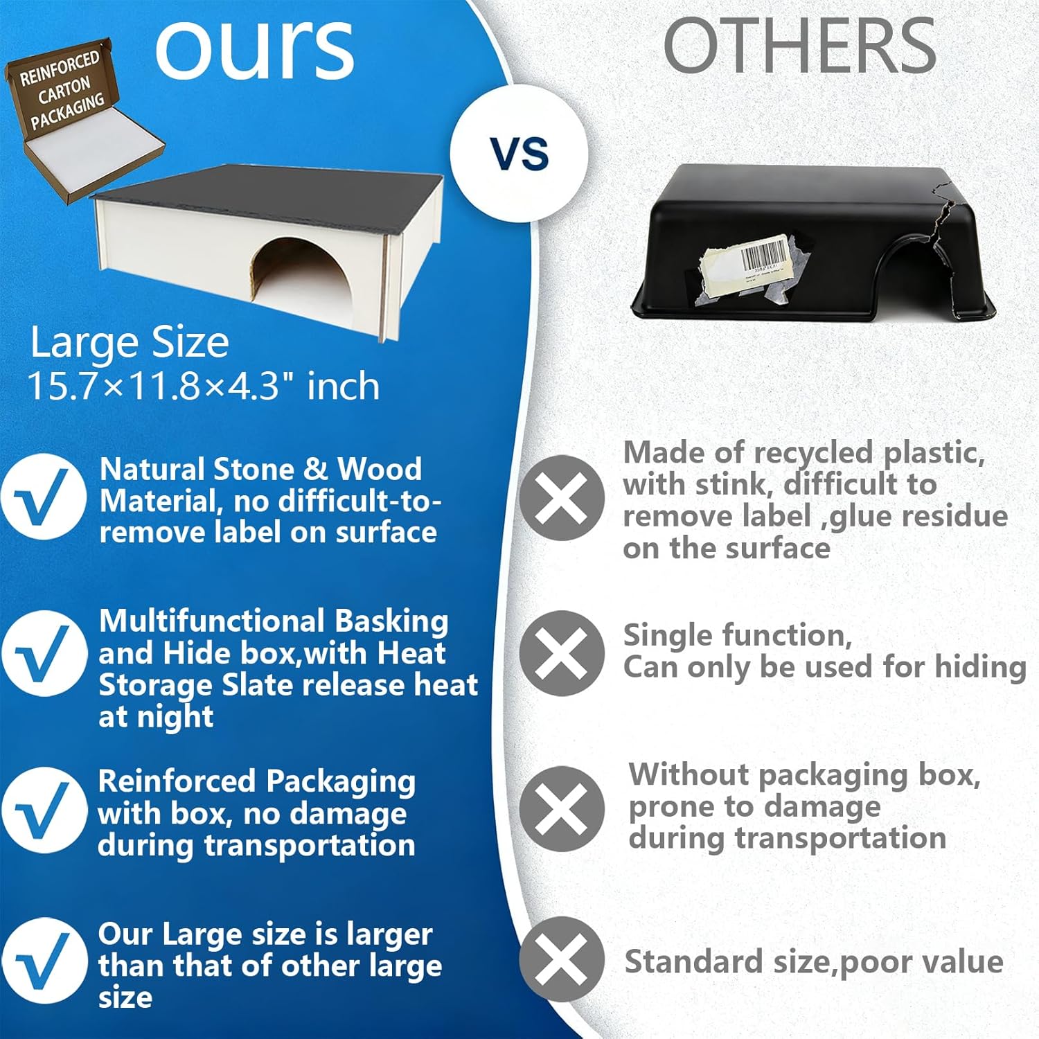 About this item 【Larger Humid Hide】Size:15.7×11.8×4.3"(XL). Entrance: W 4.33"×H 3.54". Our Largest snake hides is larger than that of others Largest size.Same price but larger size. › See more product details