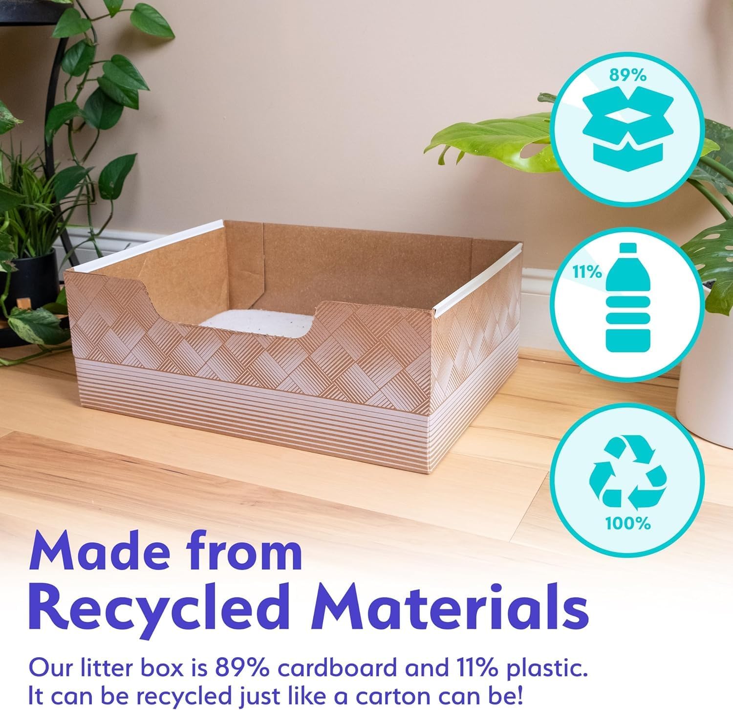 - Material: Made from 100% recycled materials, Made in the USA Cardboard/Plastic
