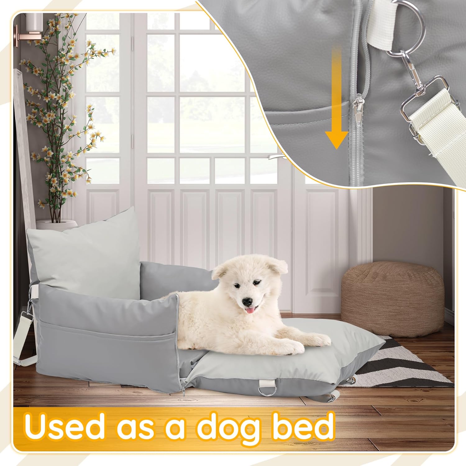 About this item Safety First Dog Car Seat: This dog car seat bed cushions are filled with PP foam, enhanced cushioning to reduce the likelihood of injury to your dog while the vehicle is in motion. Extended safety leash for safety and freedom of movement. Adjustable locking buckle on the back, as well as the reserved seat belt position, you can firmly fix this pet car booster seat on the car seat, greatly improving the safety of your pet in the car Leather Dog Car Seat: LECHONG dog car seats are made of the latest customized leather materials, which greatly improves wear resistance. Two-color splicing for more fashion. The cushion is two-sided. One side is fluff, the other side is leather. Very suitable for dog carriers & travel products and all season use Features of Dog Car Seat: This dog car carrier have 3 large pocket offer ample space to store your pet's daily necessities. Silicone dot design on the bottom enhances friction to prevent slipping. Dual straps design, vehicle front and rear seats can be used. Leather jackets are very easy to clean and wipe away stains with a light wipe Muti Functions Dog Carrie:When you go out, this pet booster seat can not only be used as a dog car seat, he is also a stylish pet portable bag. Leather-wrapped handles on both sides provide a comfortable grip, and the front and back adjustable straps reduce your burden. At home, it can be used as a dog bed by pulling down the zipper Easy to Use:Fully detachable design, stuffing is packed in separate bags, which is easy to take out, the cover can be directly washable. Its universal size easily accommodates small and medium-sized dogs and cats under 30 pounds. It is designed to fit almost all types of vehicles, cars, trucks, SUVS, you can easily install it in the front or back seat as your needs › See more product details