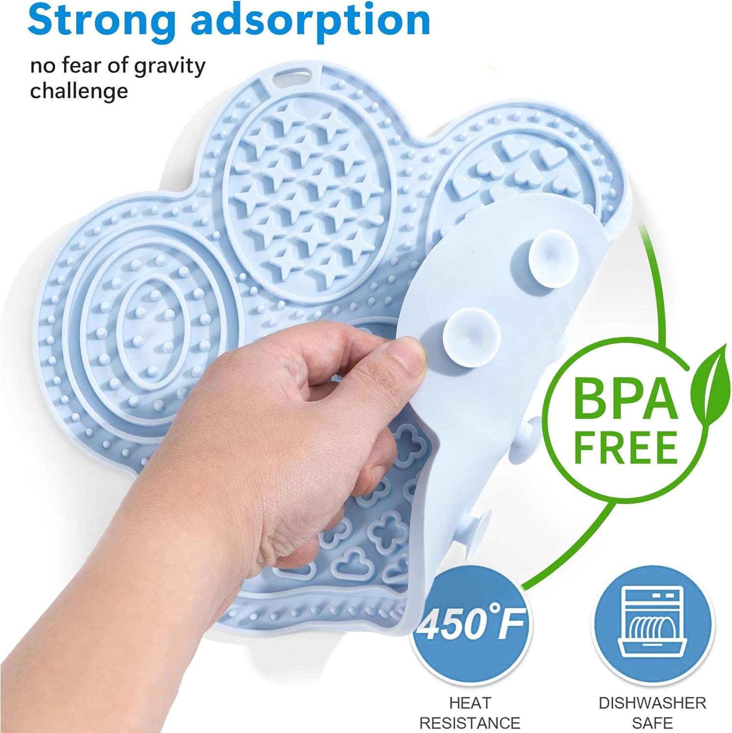 About this item Improve Digestion: Our dog licking mat can effectively prolong the eating time, help your dog develop the habit of eating slowly and keep healthy, perfect for spreading spreadable snacks such as cream cheese, yogurt, peanut butter, etc Silicone Material: The lick mats for dogs has a cute cat paw print shape, and its silicone texture surface is soft, it will distract your pet's attention and is also perfect for keeping your pet calm during nail clipping, veterinary examinations, bathing Stable Suction Cup: The back of this lick mat is equipped with a high-strength suction cup to ensure that it is firmly attached and non-slip and non-moving when pasted. You can use them anywhere, such as tiles, glass, refrigerator doors, floors, etc., and it is also very convenient to disassemble after use Easy to Clean: Our dog lick mat are easy to clean, just soak the lick pad in soapy water, scrub it with a brush and then rinse it with water, it can also be cleaned in the dishwasher, very simple and convenient Wide Application: The licky mats for dogs can not only be used as a slow feeding mat to place dog food, cat food, pet snacks, etc. It is very suitable for use as a dog licking bowl, dog snack mat, dog food mat, cat food mat, etc., suitable for small to large dogs, puppies and cats › See more product details