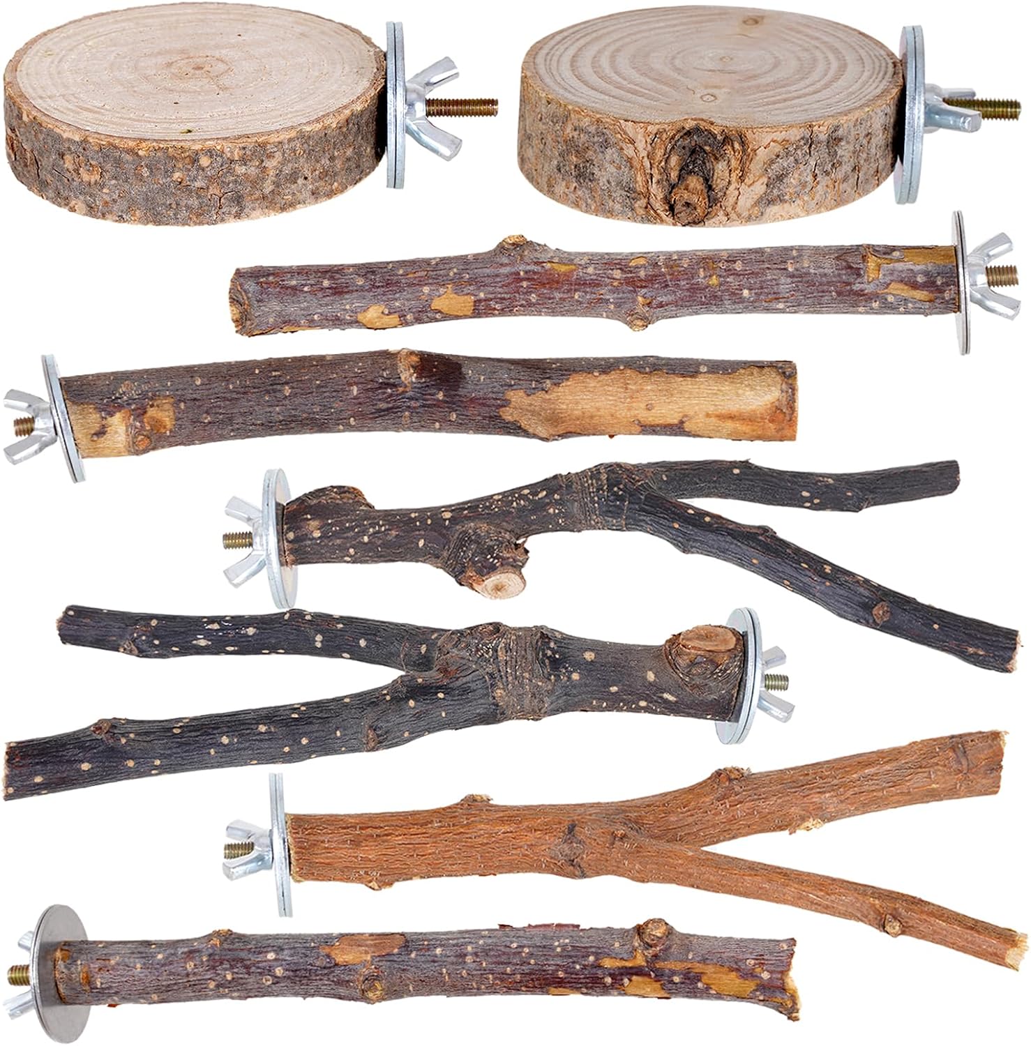 Easy installation, great performance, and variety of the animal perch. They mention it attaches to their cages easily, works perfectly, and keeps their pets busy