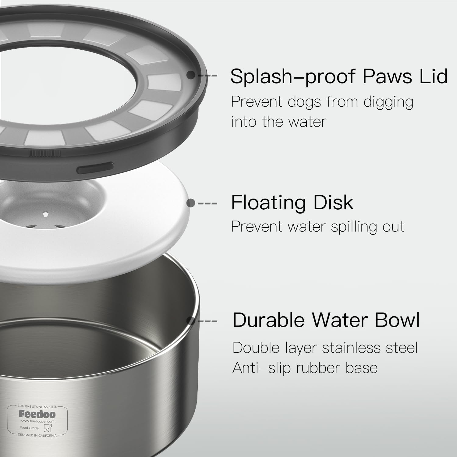Heavy duty and durable enough, chew-proof and 100% food-grade Licking mat can help to reduce anxiety, keep the dog and cat busy, also have more fun to enjoy food. Anti spill wate bowl keep suitable water for dogs, no spill and splash proof paws lid for messy drinkers. Keep steady on any floor and keep peace for messy puppy Stainless steel is all safe for dishwasher