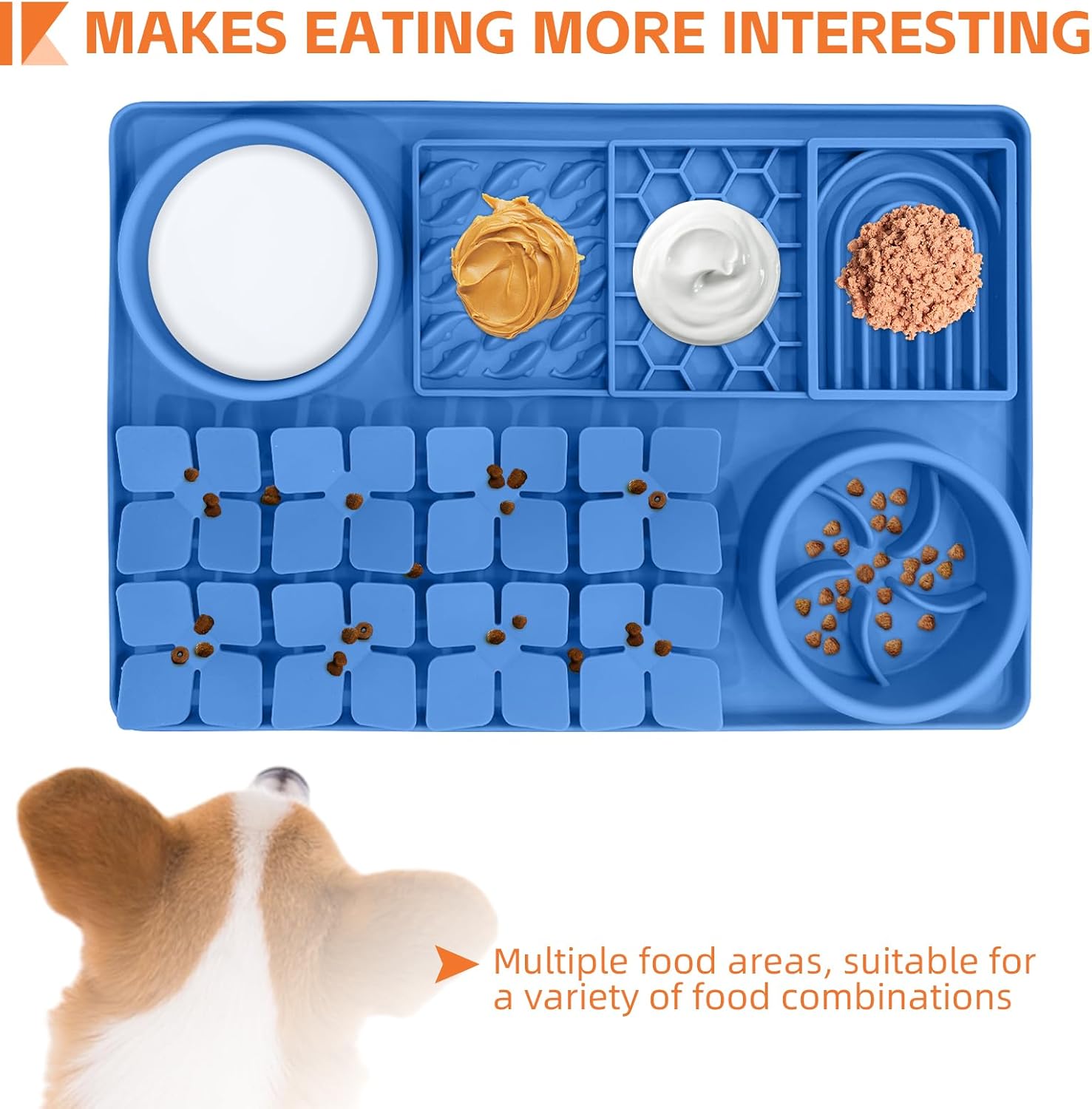 Transform mealtime into an engaging experience with this innovative silicone dog lick bowl. Measuring 15.74 In x 10.43 In x 1.57 In, this cleverly designed feeding solution features a unique spiral pattern and textured surface with raised dots that helps slow down eating and provides mental stimulation for your pet. Perfect for serving soft foods like peanut butter, yogurt, or canned food, this versatile bowl can help address issues like anxiety, rapid eating, and digestive problems. The durable silicone construction is completely odorless and can withstand temperatures from -40 to 250°C, making it suitable for use in microwaves, dishwashers, refrigerators, and ovens. The non-slip design keeps the bowl stable during use, while the smooth surface makes cleanup a breeze. Available in dark blue, green, and light blue, this interactive puzzle feeder is ideal for small and medium-sized dogs. Simply apply soft food to the bottom and textured walls, avoiding the edges, and let your pet enjoy a more engaging mealtime experience that promotes slower, healthier eating habits.