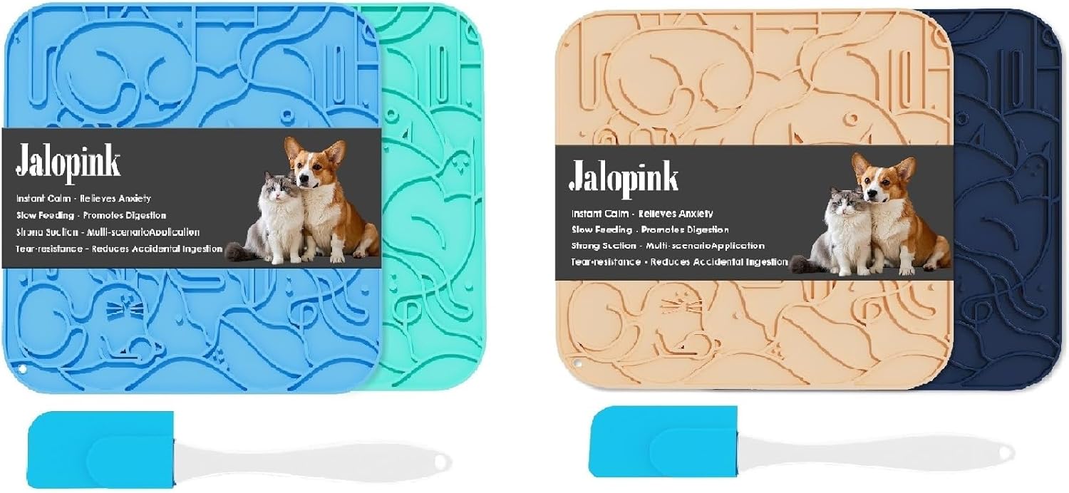 Jalopink Dog Lick Mat with Suction Cup – Soothe, Feed & Entertain Your Pet Anytime Keep your furry friend calm, healthy, and entertained with the Jalopink lick mat—perfect for dogs and cats of all sizes. Its upgraded suction cup design stays firmly in place during bath time, grooming, or training, while the textured surface slows down eating to support digestion and reduce anxiety. Made from tear-resistant, food-grade silicone, it's safe, durable, and dishwasher-friendly—ideal for everyday use at home or on the go