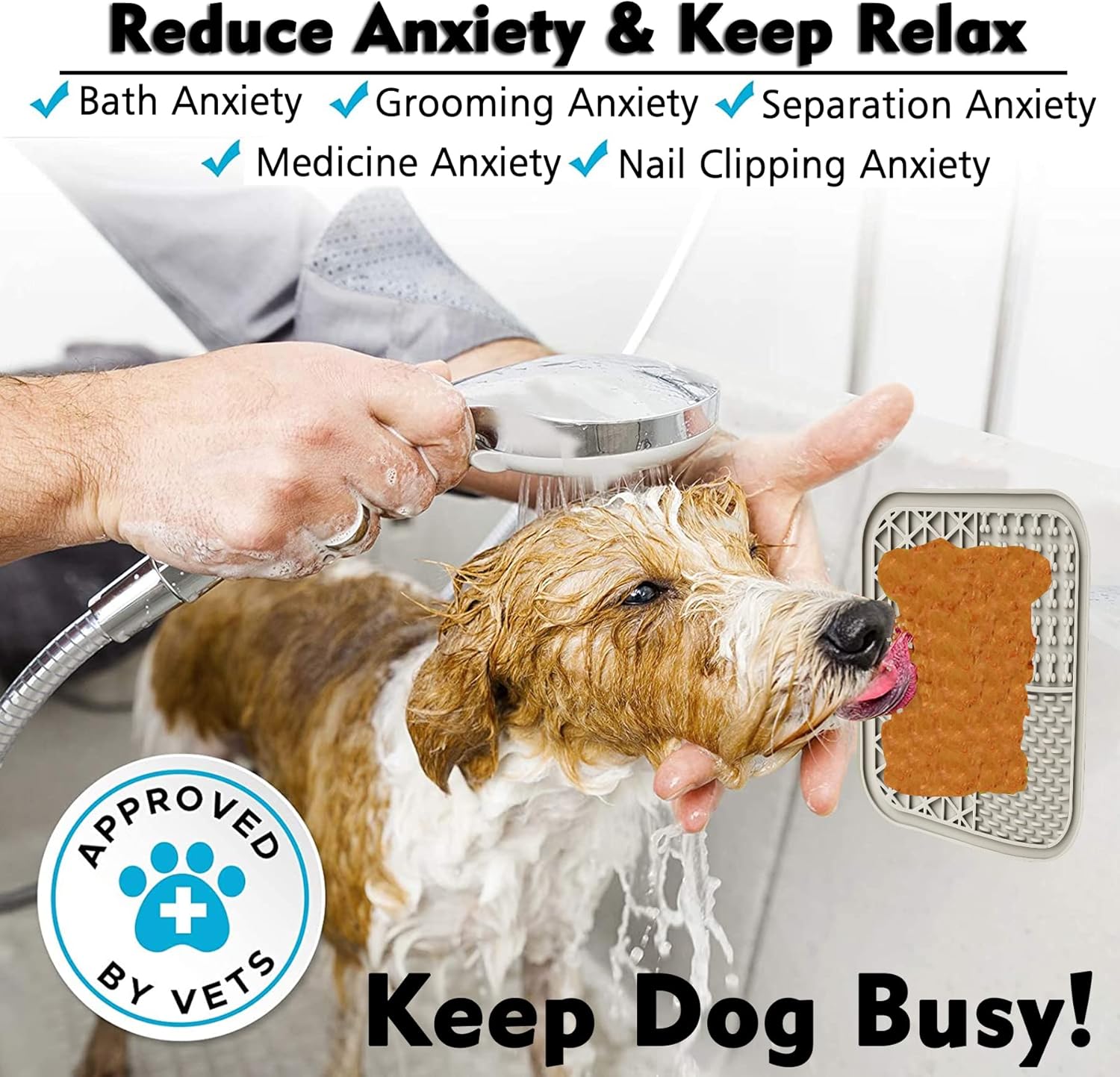 About this item ★ MAKE BATH TIME FUN - Just spread peanut butter and other snacks on the dog lick mat and stick to the slower tile, bathtud or glass. It effectively distract your pets and calm them down during bathing or grooming time. Use for small to large dogs and cats. ★ IDEAL GROOMING MATE - Not only for bathing, this Lick mat for dogs cats also can be used for brushing, nail trimming, and training... Dog licking mat reduces boredom,anxiety and destructive behavior. Calm your pet as they enjoy their favorite treat. ★ SUPER STRONG SUCTION - Kwispel dog lick mat with 36 suction cups avoid falling off, you can stick it on your tub, shower wall, tiles or other smooth surface. Or stick in the woodlen floor as a puzzle slow feeder dog bowl. ★ SLOW FEEDER DESIGN - Slow feeder Lick mat make your pet slow eat to protect stomach, reduces the risk of choking bloat, choking and overeating, Promote your pet's mental and physical health. ★ SAFETY MATERIAL & SERVE HEALTH TREATS - This dog lick pad is made of food-grade silicone and does not contain BPA, so it is safe for your pet to use. It keeps your pet happily engaged as they lick peanut butter, yogurt, pumpkin puree, and other natural, organic & healthy pet approved treat from the slow feeding licking mat. › See more product details