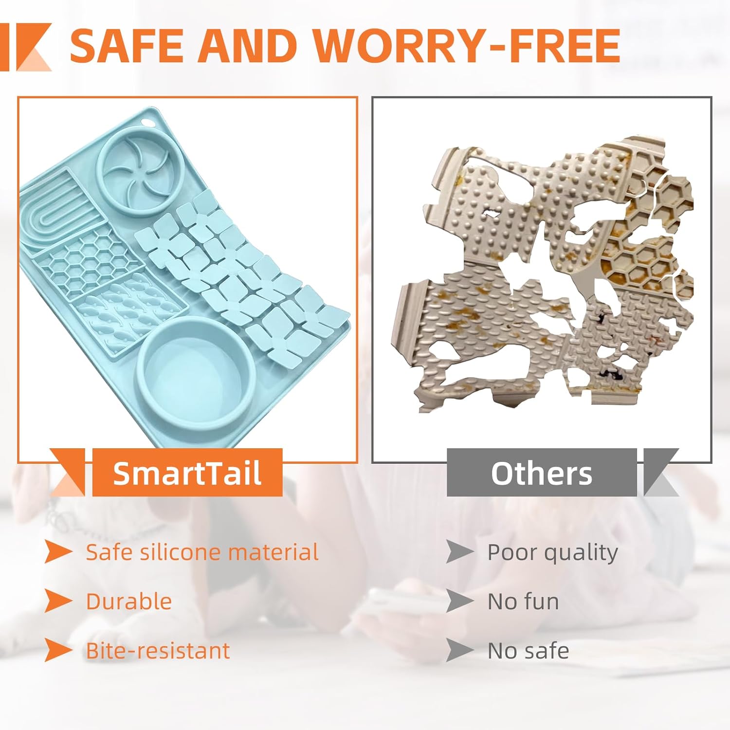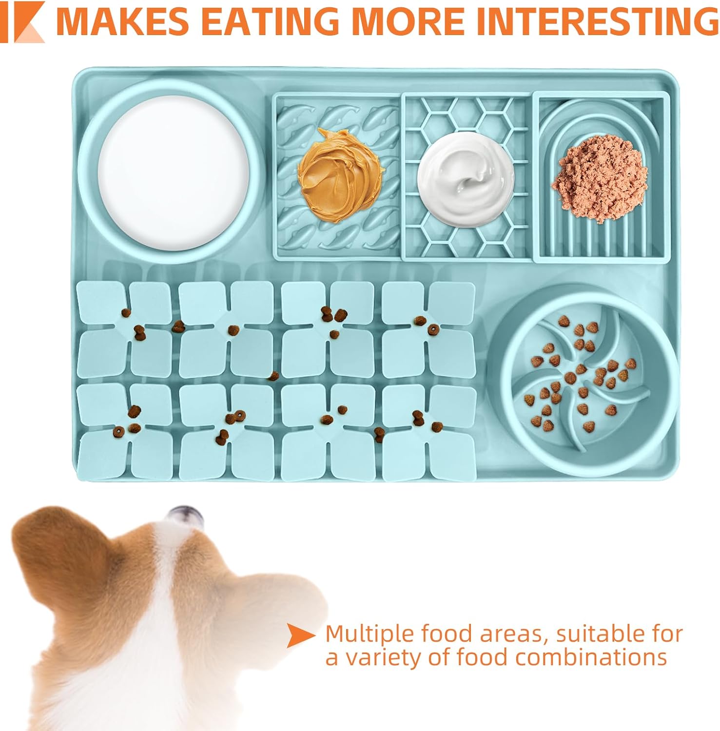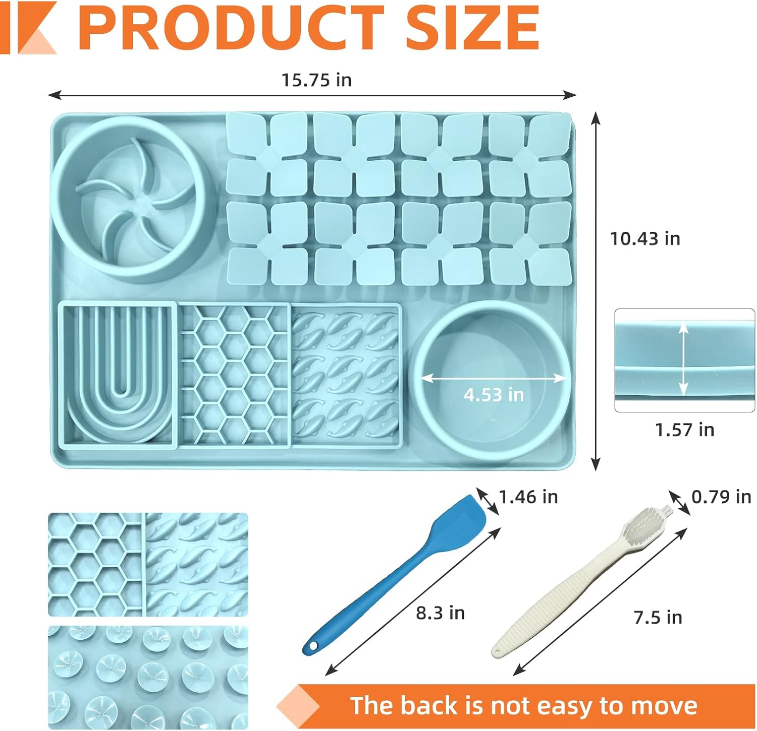 Transform mealtime into an engaging experience with this innovative silicone dog lick bowl. Measuring 15.74 In x 10.43 In x 1.57 In, this cleverly designed feeding solution features a unique spiral pattern and textured surface with raised dots that helps slow down eating and provides mental stimulation for your pet. Perfect for serving soft foods like peanut butter, yogurt, or canned food, this versatile bowl can help address issues like anxiety, rapid eating, and digestive problems. The durable silicone construction is completely odorless and can withstand temperatures from -40 to 250°C, making it suitable for use in microwaves, dishwashers, refrigerators, and ovens. The non-slip design keeps the bowl stable during use, while the smooth surface makes cleanup a breeze. Available in dark blue, green, and light blue, this interactive puzzle feeder is ideal for small and medium-sized dogs. Simply apply soft food to the bottom and textured walls, avoiding the edges, and let your pet enjoy a more engaging mealtime experience that promotes slower, healthier eating habits.