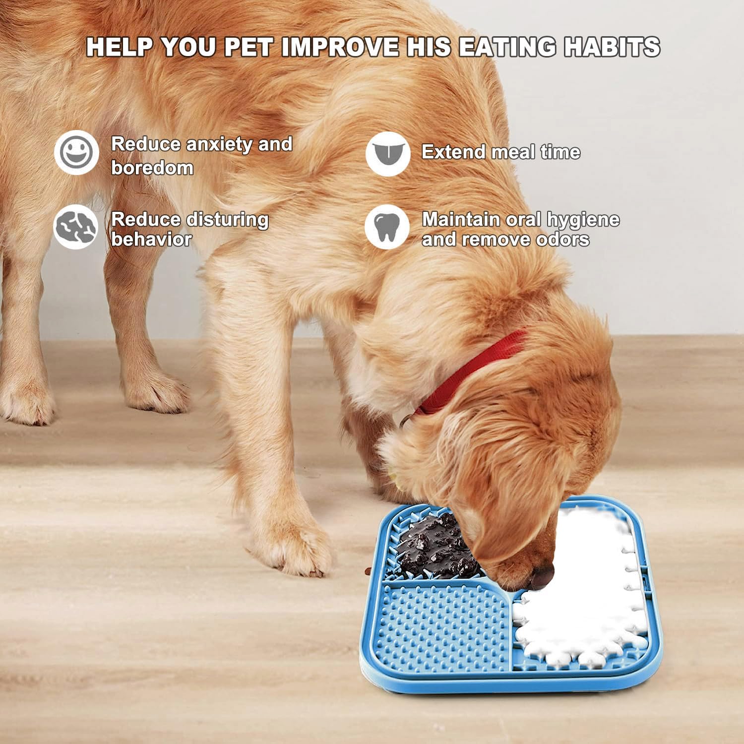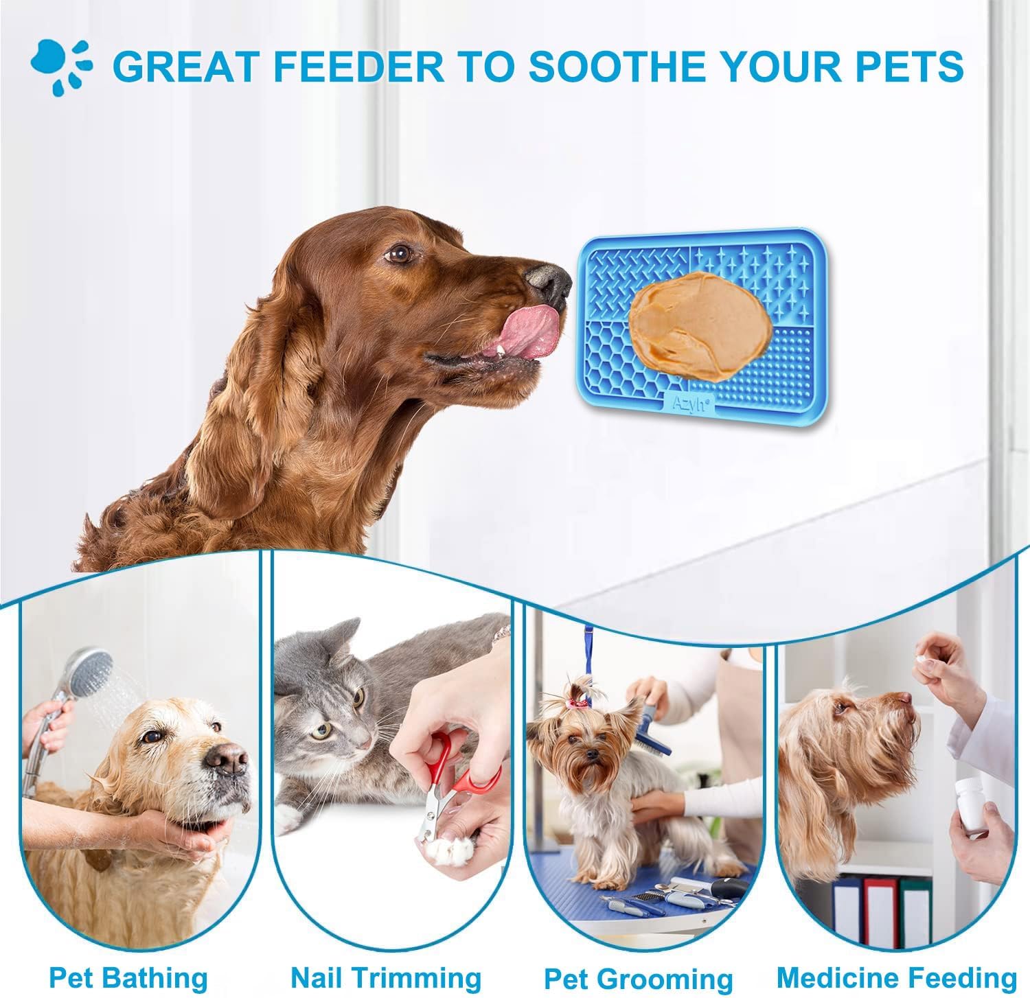 About this item 【Slow Feeding Enjoyment and Digestive Optimization】Choose Azyh 2024's uniquely designed Slow Feeder Pet Licking Mat (9.9'' × 6'')for large dogs, puppies, cats, and kittens. This mat significantly reduces the eating speed of dogs and cats, effectively preventing bloating and choking risks. The licking mat not only extends your pet's mealtime but also helps cultivate good eating habits, further promoting a healthy digestive system 【Anxiety and Boredom Relief】 Lick pat is an excellent choice for alleviating pet boredom and anxiety, allowing your beloved pet to enjoy longer moments of joy. The licking process also promotes the release of endorphins, bringing calmness and comfort to puppies. As a stimulating toy for large dogs, the licking mat keeps them active and is also suitable for medium-sized dogs and cats, helping to eliminate boredom 【Food-grade Material and Easy Cleaning】Made from 100% food-grade silicone material without BPA, our lick pat for puppies and large dogs is non-toxic, heat-resistant, and microwave-safe. After each use, simply soak the licking mat in warm soapy water and brush off residual food with a brush, then rinse clean with water 【Secure Adhesion and Versatile Use】With 75 strong suction cups, the pet licking mat quickly and firmly adheres to smooth surfaces such as glass, tiles, floors, bathtubs, and refrigerators. Its four different textured zones cater to various pet foods like peanut butter, yogurt, and cream cheese. The lick pat is extremely durable and easy to use, allowing for DIY applications 【Quality Assurance and Hassle-free Shopping】Your satisfaction is our top priority. Our package includes 2 mats, 1 spatula, and 1 brush, with multiple color options available. We promise hassle-free after-sales service for both puppy and large dog licking mats. Please note, this is not a chew toy; always supervise your pet during use. For any questions or concerns, feel free to contact us anytime › See more product details