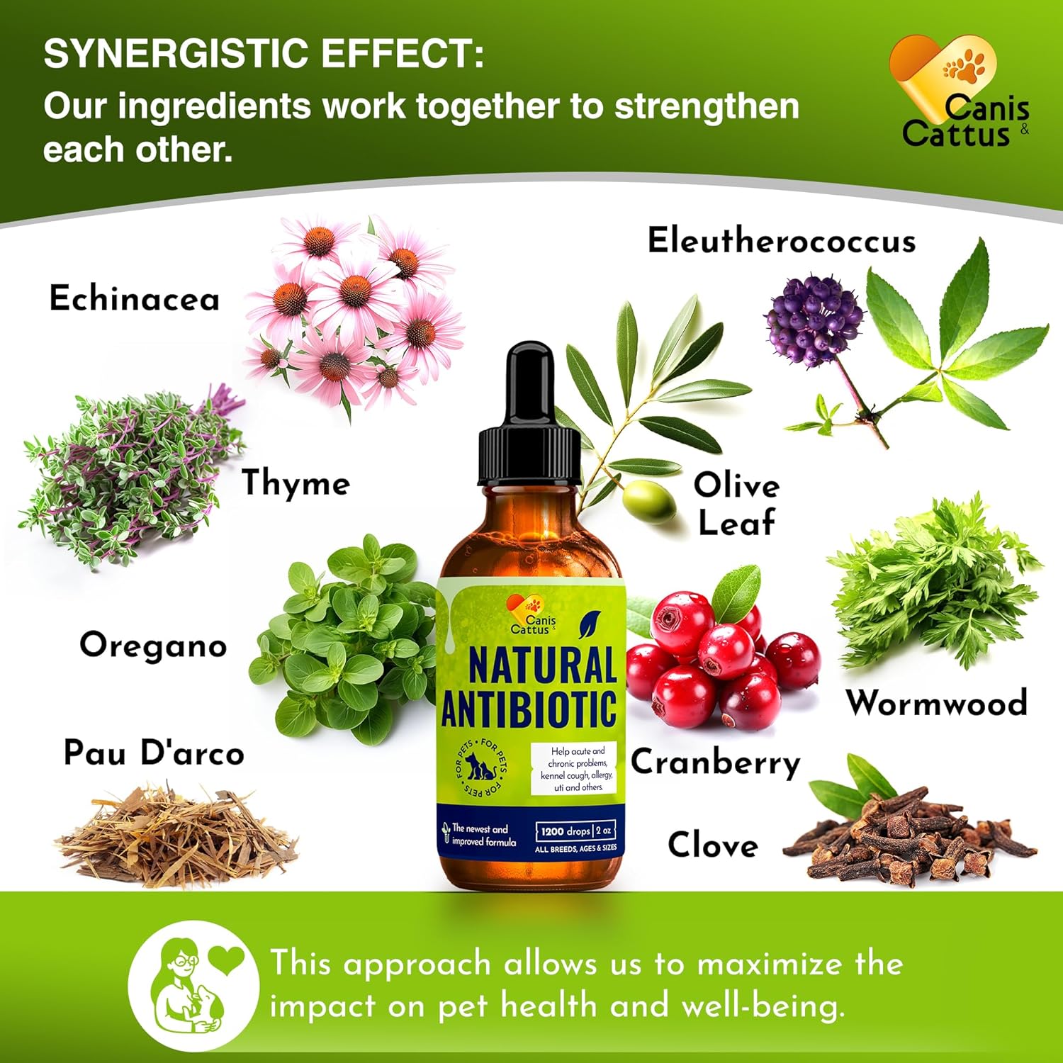We developed the ideal Natural Antibiotic for all pets, which gently cares for and supports dogs and cats with UTI treatment, cough, allergies, bladder condition, and overall breathing balance. Also, we formulated safe and helpful vitamins for dogs and cats that provide hip & joint and brain normalization function. In addition, 10-in-1 Multivitamin supports overall system stability and promotes pets' well-being at all times. Then we combined these two fantastic products in a bundle, and now you have a compact pack for your cats and dogs that supports their condition under any circumstances and helps them with the versatility of moments. Main benefits: - Convenient set – two bottles of supplements for the versatility of conditions. - Travel-friendly – portable supplement in drops for easy dosage. - Safe for all – suitable compound for kittens and puppies. The main ingredients for Antibiotic: Pau D'Arco, Olive, Thyme, Goldenseal, Ginger, Cranberry, and Echinacea Purpurea. The main ingredients for Multivitamin: Vitamin B1 (Thiamine HCL), Vitamin B2 (Riboflavin-5-Phosphate), Vitamin B3 (Niacinamide), Vitamin B6 (pyridoxine HCl), Vitamin B9 Folic Acid (Folate), Vitamin B12 (Methylcobalamin), Vitamin C (Ascorbic Acid), Vitamin D3 (Cholecalciferol), Glucosamine, MSM (Methylsulfonyl Methane), Cranberry Juice Powder. Mode of application: Dosage for Antibiotic: Under 10 lbs = 1/2 dropper (0.5 ml) 10-35 lbs = 1 1/4 dropper (1.25 ml) 36+ lbs = 2 droppers (2 ml) *Use once or twice a day. Dosage for Multivitamin: Under 10 lbs = 1/2 dropper (0.5 ml) 10-35 lbs = 1 dropper (1 ml) 36+ lbs = 2 droppers (2 ml) *Use one to three times a day. Add our supplement to water or food bowl, and administer the drops directly to your pet's mouth. *Consult a specialist before usage.