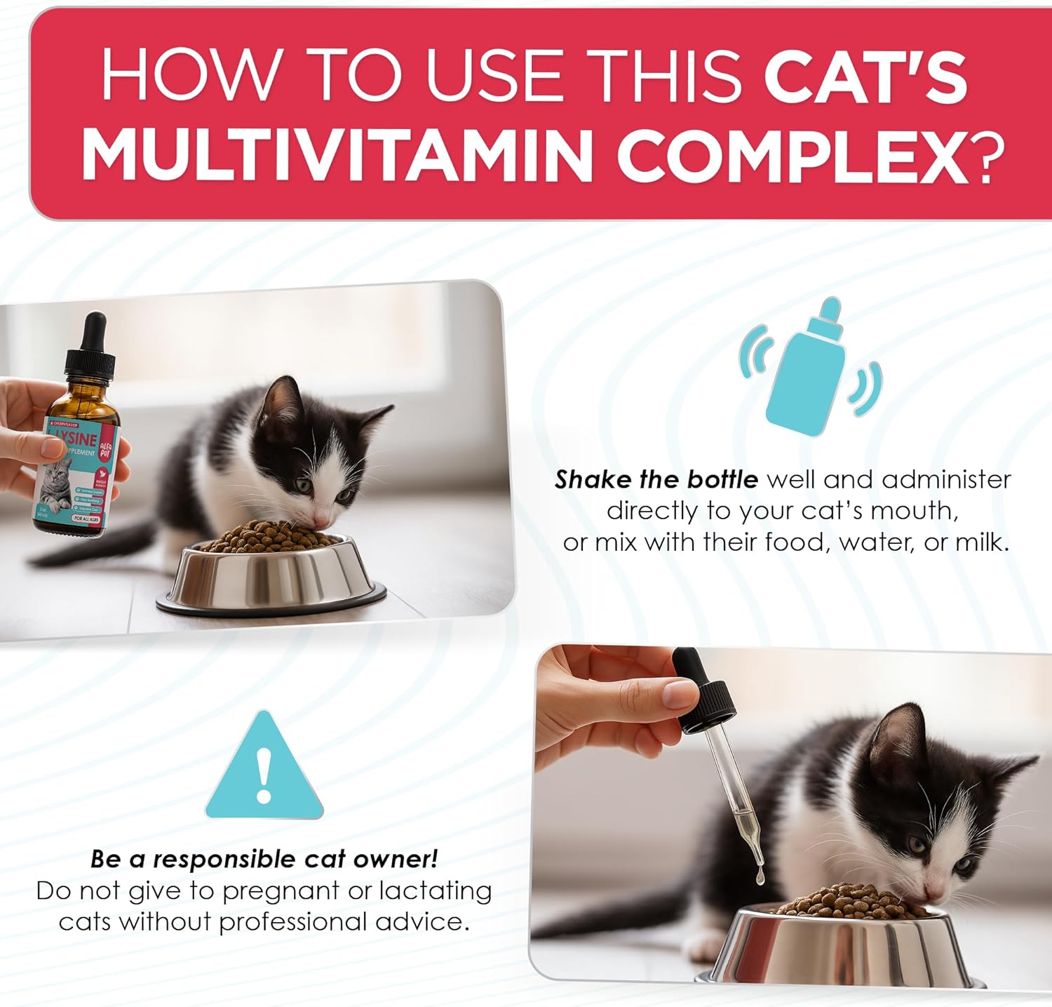 About this item 2 PACK SUPPLEMENT: 2 oz + 2 oz = 4 oz! Our L-Lysine for Cats comes in a convenient two-product bundle, making it easier to support your cat’s well-being and simplify daily care. FOR ALL CONDITIONS: This multifunctional liquid supplement helps with sneezing, watery, irritated eyes, and nasal discharge. Comprehensive care for even more conditions of your fur friend! LIQUID PROBIOTIC: Does your cat have moments with gut? With its larger volume, our L Lysine cats not only support wellness but also promote comfortable digestion! FULL OF NUTRIENTS: To enrich cat supplements, specialists include essential vitamins, creating a formula packed with nutrients that provide comprehensive support for your pets. CONVENIENCE AS PRIORITY: 4 oz of our supplement is created for an active life with your cat! Have one pack ready at home and the second in your bag for unexpected adventures. › See more product details