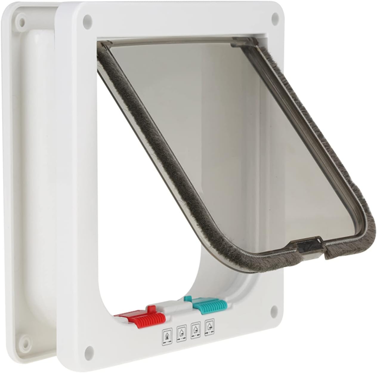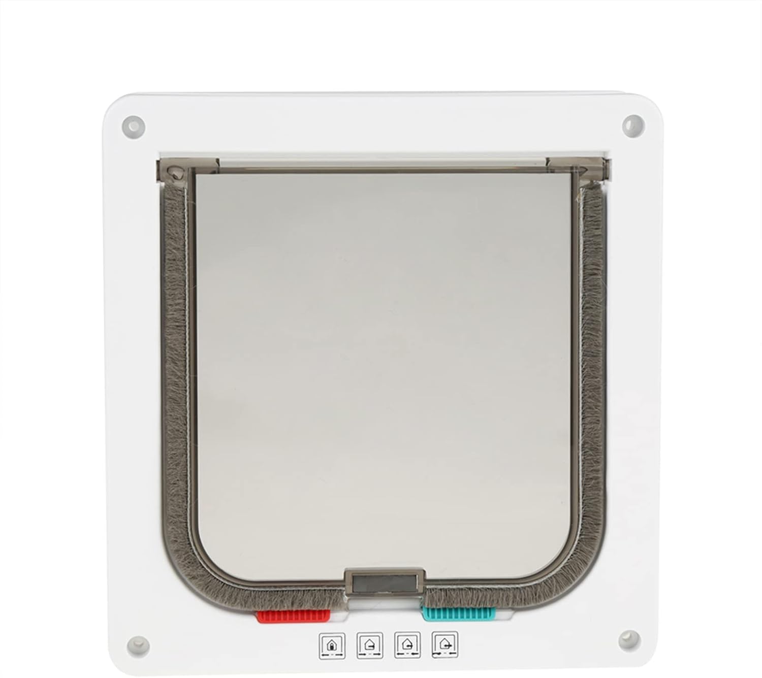 Features:Let your cat pass through each internal doorGive your cat to come and go, the freedom, as he or she pleases with this cat flap that has a 4-way locking systemAlso suitable for small dogsThe double‑flap provides weatherproofing and labor saving fuctions, and a slide‑in closing panel adds additional insulation when your pet is not using it.This do‑it‑yourself project easily installs in all types of interior and exterior wall. Specifications:Color whiteMaterial: PlasticSize L: Entire flap including frame: 23.5 * 25.2 * 5.5cmThe actual flap: 19 * 18 cm4 Ways To Go In And Out Control:1. door is locked from both sides2. flap is completely open and cat can come and go at will3. Cat can only penetrate from the outside, but do not go back4. Cat can go out but not go back (to other cats also prevents entry)Surgery:1. Remove red button to the right and blue button to the left door will unlock. Cat can go out and get.2. Remove red button to the left and blue button to the left, Cat can only enter and not go out.3. Remove red buttons to the left and blue buttons to the right cat can not enter and go out4. Remove red button to the right and blue button remove only to the right, remove cat and can not go back.Package List:1 x 4 Wage cat flapNote:This product does not have a battery, it is not an electronic product, nor is it smart. It is an ordinary door and needs to be drilled through by the cat.
