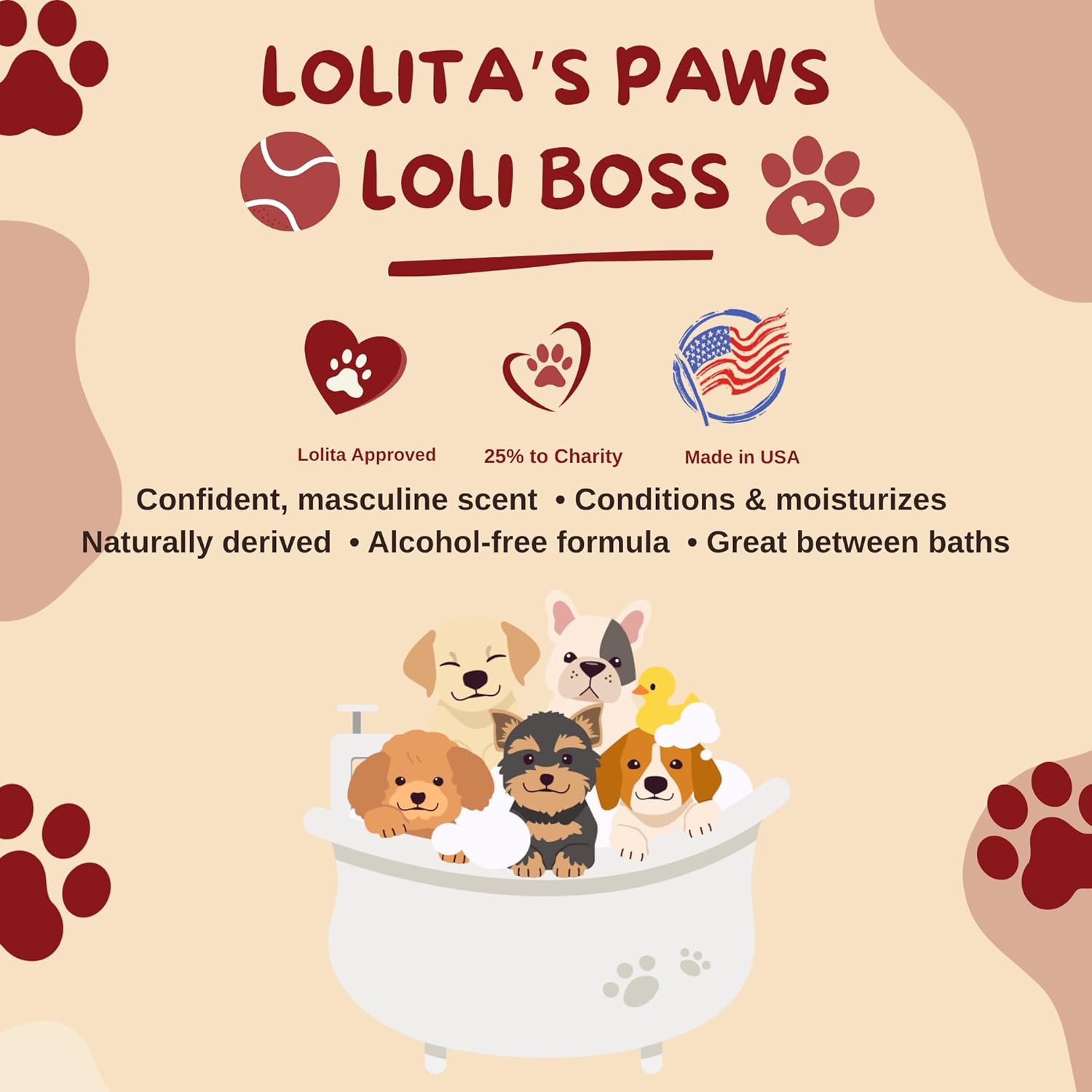 Loli Boss was made for the good boys who strut, charm, and turn heads without even trying. This naturally-derived cologne delivers a confident, masculine fragrance designed to refresh, soften, and condition coats between baths. Infused with coconut and palm-based ingredients, it leaves every pup smelling fresh and feeling smooth — because real gentlemen deserve grooming that’s as bold as their personality. Free from alcohol, parabens, sulfates, and harsh chemicals — because care should never come with compromise. Honest, safe, and paw-satively irresistible, every bottle honors Lolita’s story and helps another pet in need — one paw at a time.