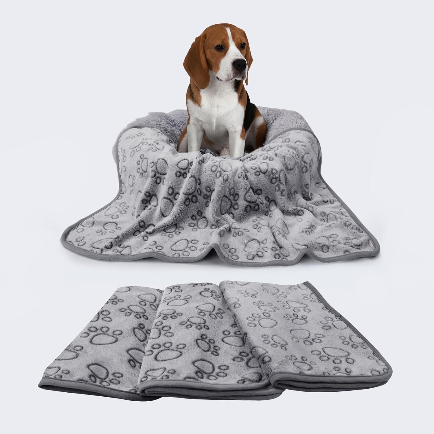 About this item SIZE: The small/medium/large pet blankets contain 6 covers per pack. Small: 23" x16"(60*40cm) / Medium: 30"x20"(76*52cm) / Large: 41"x31" (104*78cm).Value pack! MATERIAL: 100% double-sided coral velvet textures (polyester).The blankets are made of ultra-soft extravagant fabric. EASY TO WASH/CLEAN: 100% machine washable. The blankets not only look elegant, it is also easy to clean and dry. It can be utilized as a cover or quilt for dogs, cats and other pets. USAGE: Protect furniture from scratching and pet hair. Cute and lovely paw print design. No pilling, skin-friendly, perfect for the couch, sofa, bed and pet carrier. EASY TO CARRY: The blankets are soft and lightweight. It's perfect to take it to participate in outdoor activities, such as traveling, camping, and picnic. Keep your pets warm and cozy during sleeping in the outdoors. › See more product details