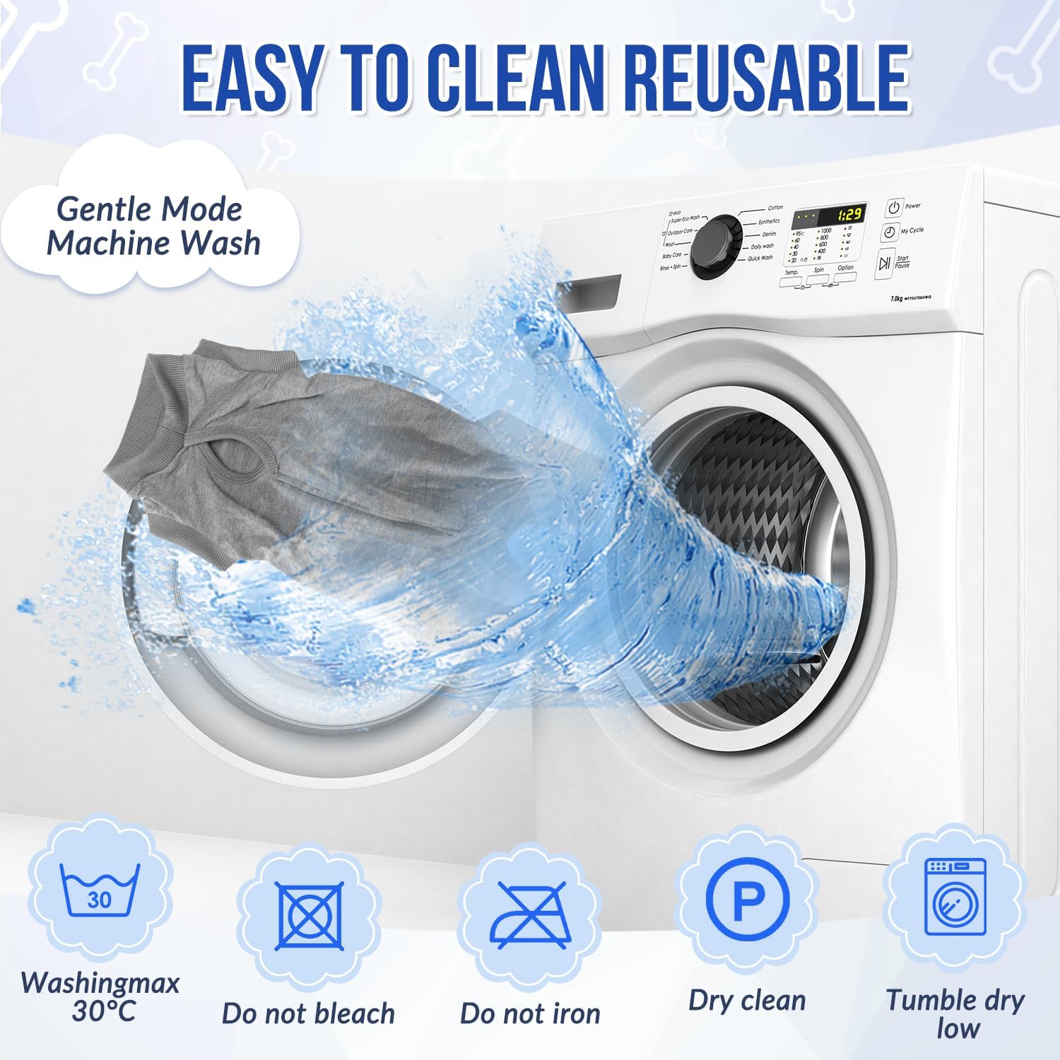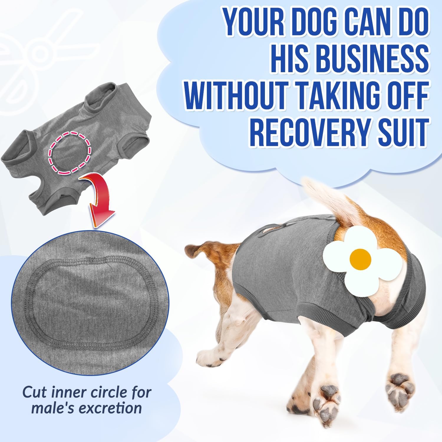 About this item 【Secure Fit and Easy Wear】 --- The adjustable back hook and loop fastener design allow easy adjustment based on your dog’s size and comfort. The recovery suit for dogs ensures a secure, custom fit, providing a safe and tailored wearing experience for your feline friend. 【Toilet-friendly & Unisex】 --- With sufficient space at the back, pets can use the restroom freely while wearing a recovery suit without taking it off or getting dirty clothes. For male dogs, it also has a customizable area for a perfect fit. (1) -Caution: Before you start cutting, make sure to try on and find the ideal position. 【Soft Breathable Fabric for Relaxation and Recovery】 --- Made of soft and cozy 95% cotton and 5% spandex, our dog surgical recovery suit for female male dogs is designed to provide comfort to your furry friend. Its breathable and stretchable fabric helps reduce anxiety and stress during the recovery period, creating a soothing environment that aids in faster healing. 【Prevents Scratching, Biting, and Licking Wounds】 --- The post-surgery recovery suit helps prevent your furry friend from scratching and licking surgical wounds, reducing the risk of infection and further injury. Suitable for post-surgery, spaying, skin medication, and weaning, the kitten shirt can also be used as everyday clothing. 【Cone Alternative for Dogs & 5 Sizes Available for Perpert Fit】 --- The dog surgery suit female spay suit is a professional alternative to cones or bandages. It is more comfortable and flexible, allowing your pet to move freely, play, and eat without restriction, making the recovery process more pleasant. › See more product details