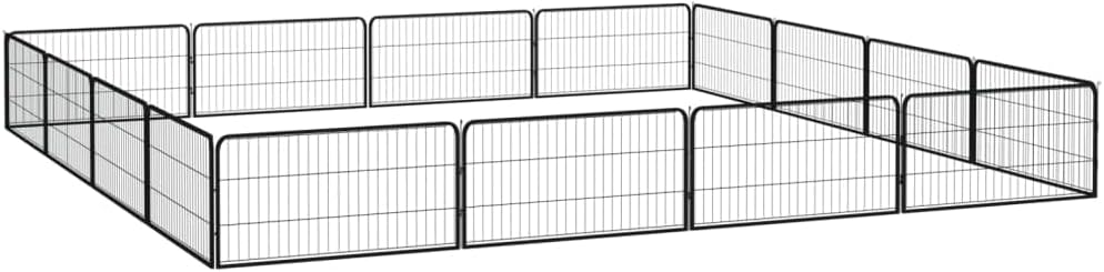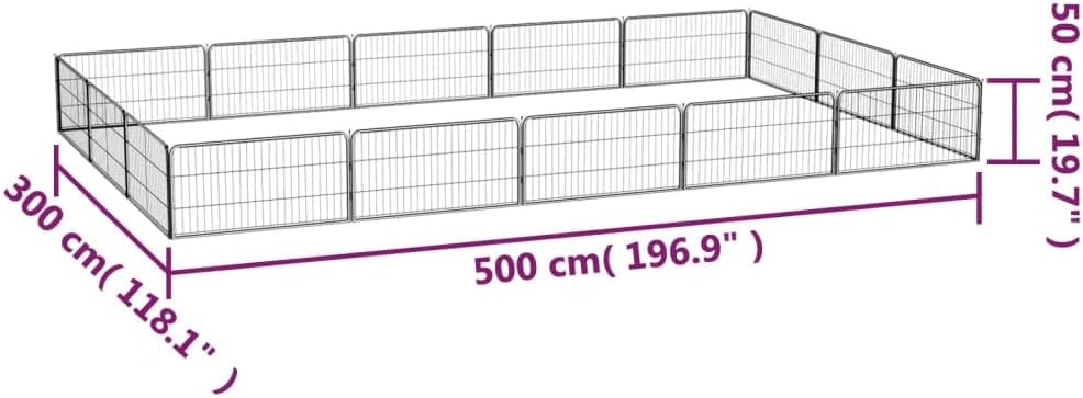 Spacious Exercise AreaDesigned with your dog's safety and comfort in mind, this 16-panel dog playpen measures 196.9" x 118.1" x 19.7". It offers plenty of room for your furry friends to play and exercise while preventing mischievous behaviors. By providing a secure environment, you can relax knowing your pets are safe while they enjoy their outdoor adventures.Sturdy ConstructionMade from heavy-duty powder-coated steel, this playpen delivers exceptional and stability. This robust construction ensures that it can years of use, making it an investment for dog lovers and trainers alike.Ventilated SafetyThe open steel-bar design promotes ventilation, giving your pets a fresh and space to play. This is particularly beneficial during warmer months, as it helps prevent overheating while keeping them secure within the enclosure. DesignYou can easily configure this playpen to fit various spaces, ranging from backyards to living rooms. With 16 panels included, you have the option to create any shape that suits your needs, ensuring versatility for any situation.Easy AssemblyThis playpen comes with an assembly manual, allowing for quick and simple installation. Each panel is designed for easy connection, ensuring a setup process so you can focus more on your pets and less on assembly.